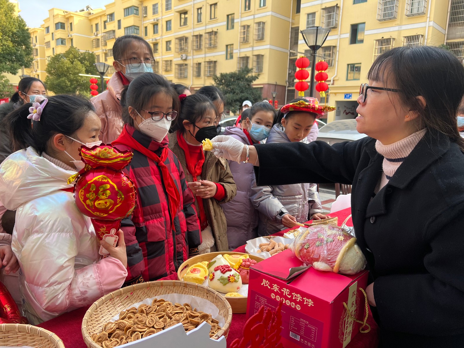 一排彩色的灯笼下人潮涌动,小朋友们或安然而立凝神思考,或捶胸顿足呼之欲出,或豁然开朗惊喜万分,全神贯注地投入到元宵节经典活动“猜灯谜”当中。随着一个个谜底揭晓,惊喜的欢呼声此起彼伏。融入了廉政知识的精彩灯谜,娓娓道来的感动中国十大人物杨善洲的故事,在岁月沉淀中愈发脍炙人口的《爱莲说》,“青廉课堂”环环相扣为青少年植下廉洁、自律的种子。社区红十字会志愿者为小朋友们带来了关于二十大精神与廉洁品质的分享,钱桥中心小学的孩子们在老师带领下来到社区体会俗世里浓厚的元宵氛围。神笔马良、踩高跷、木射游戏、丢沙包、跳绳、帽子吃糖、兔子套圈……种类繁多的传统文化游戏进行得如火如荼。志愿者们鼓励家长和孩子们依次尝试,现场好不热闹。最受青睐的当属传统美食品尝区,一串串糖葫芦和一盆盆花生糖刚一上桌就被一抢而空,新鲜出炉的中式馒头、油赞子等也备受青睐。活动现场回归年的味道,延续民俗与美食的传承。
