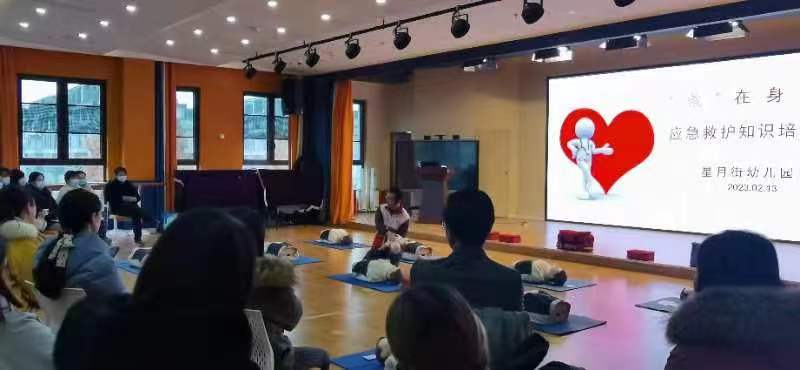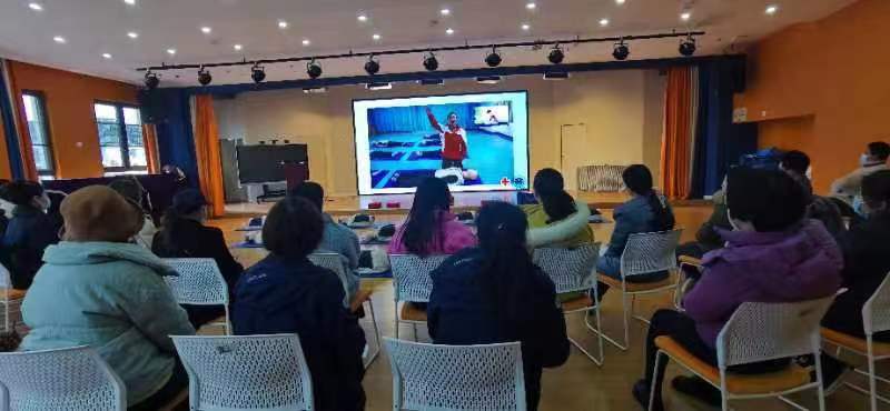 为进一步加大社会公益性应急救护培训普及力度,提高幼儿老师的应急救护技能, 2023年2月13日,南京市建邺区红十字会邀请红十字会救护培训老师在建邺区星月街幼儿园小礼堂为36名老师开展应急救护培训。