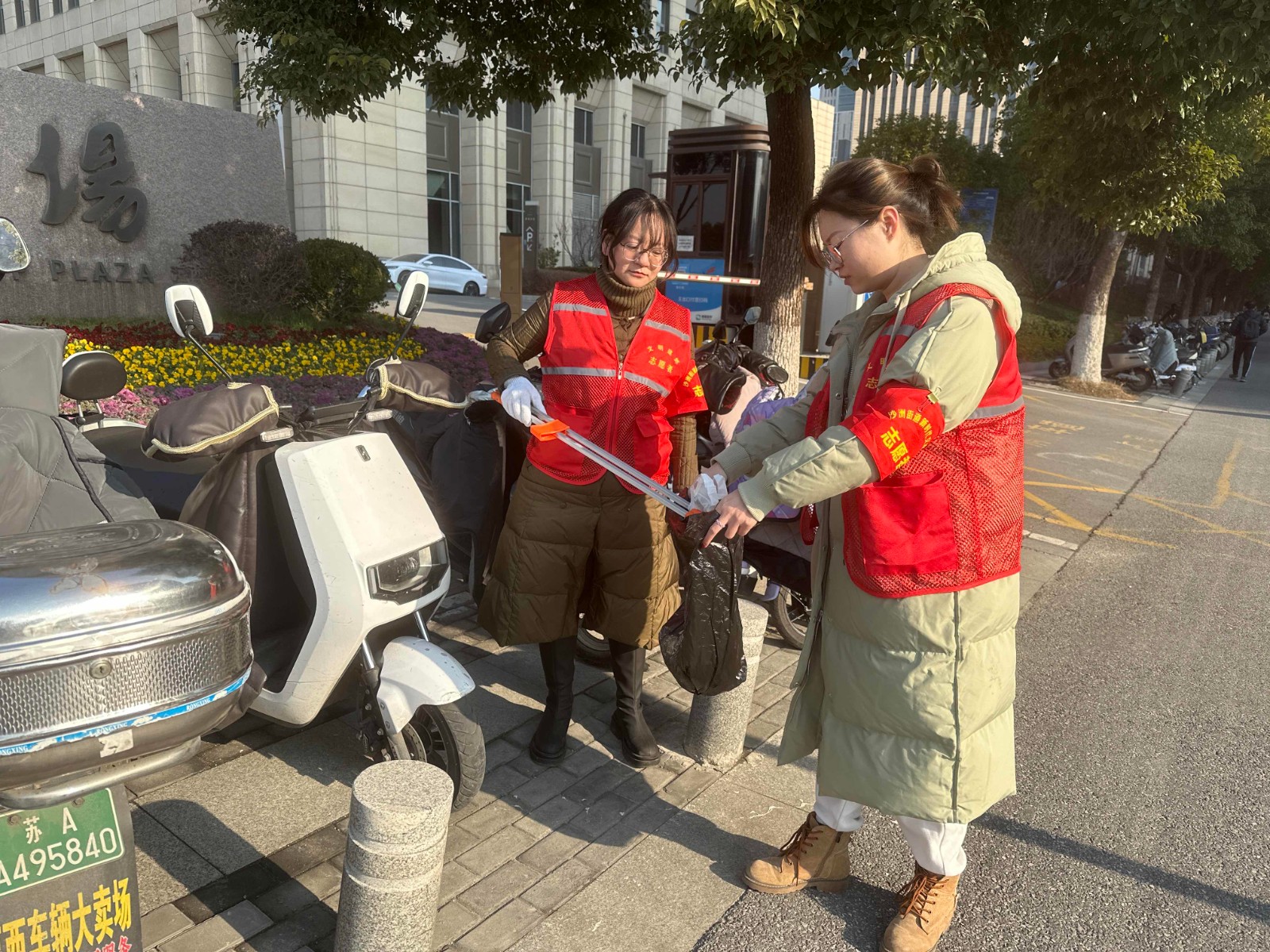 2023年 2月15日,南京市建邺区红十字会组织志愿者积极参与文明城市创建活动。