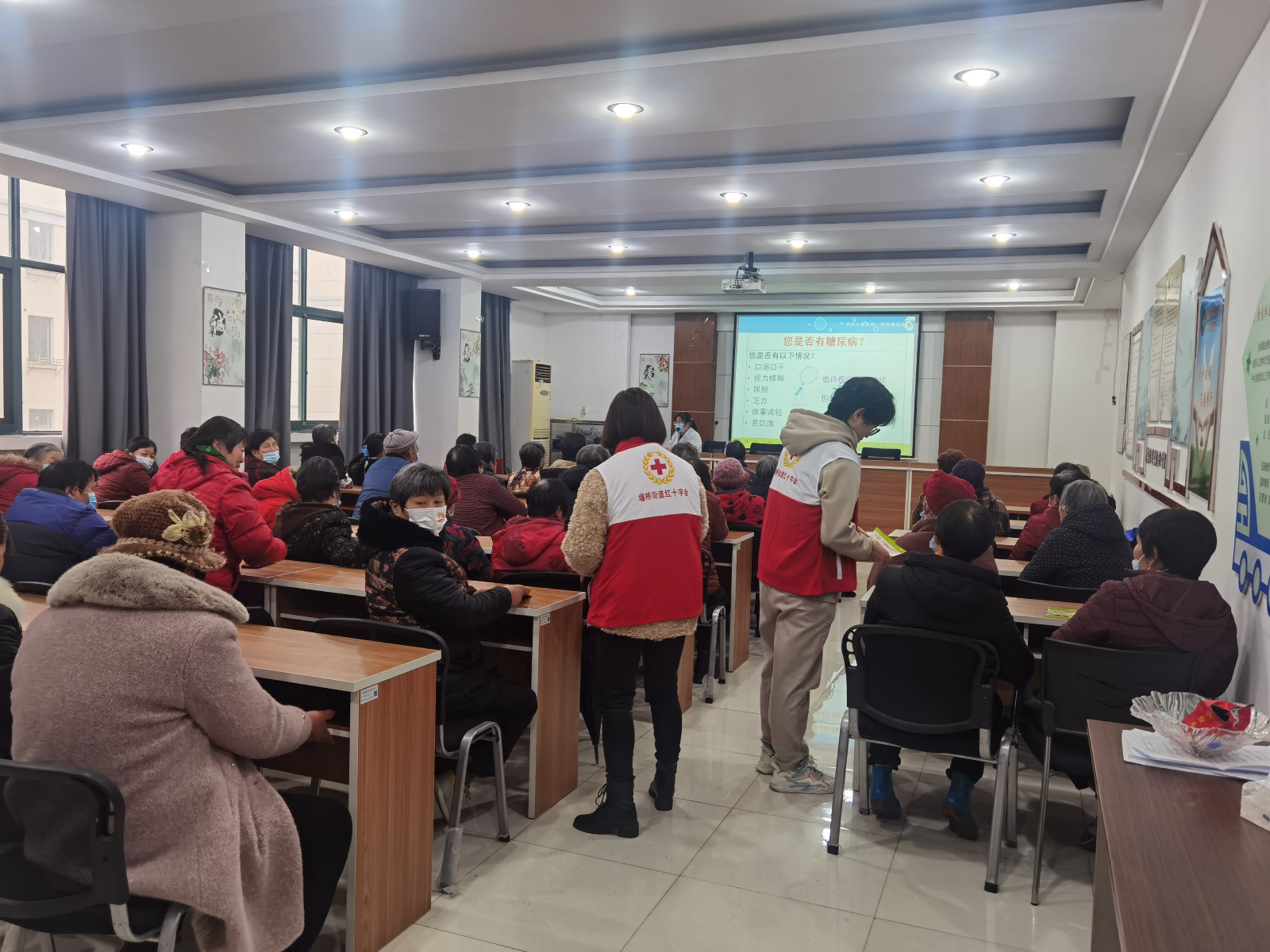 活动中,金惠社区卫生服务站助理医师卢敏医师通过ppt形式分别从糖尿病的基本概念、糖尿病症状,糖尿病的临床表现以及人们对糖尿病的认识误区等多方面进行讲解。讲述糖尿病会引起的急性并发症和慢性病,强调了预防糖尿病的重要性以及患有糖尿病给身体带来的危害。通过现场咨询、红十字会志愿者发放宣传册等多种方式向居民介绍了如何预防糖尿病,提倡合理膳食、少吃含糖分高的食品、控制体重、适量运动和限盐、限酒、控烟的健康生活方式,提高糖尿病防治意识,全面细致的讲述受到现场居民一片好评。