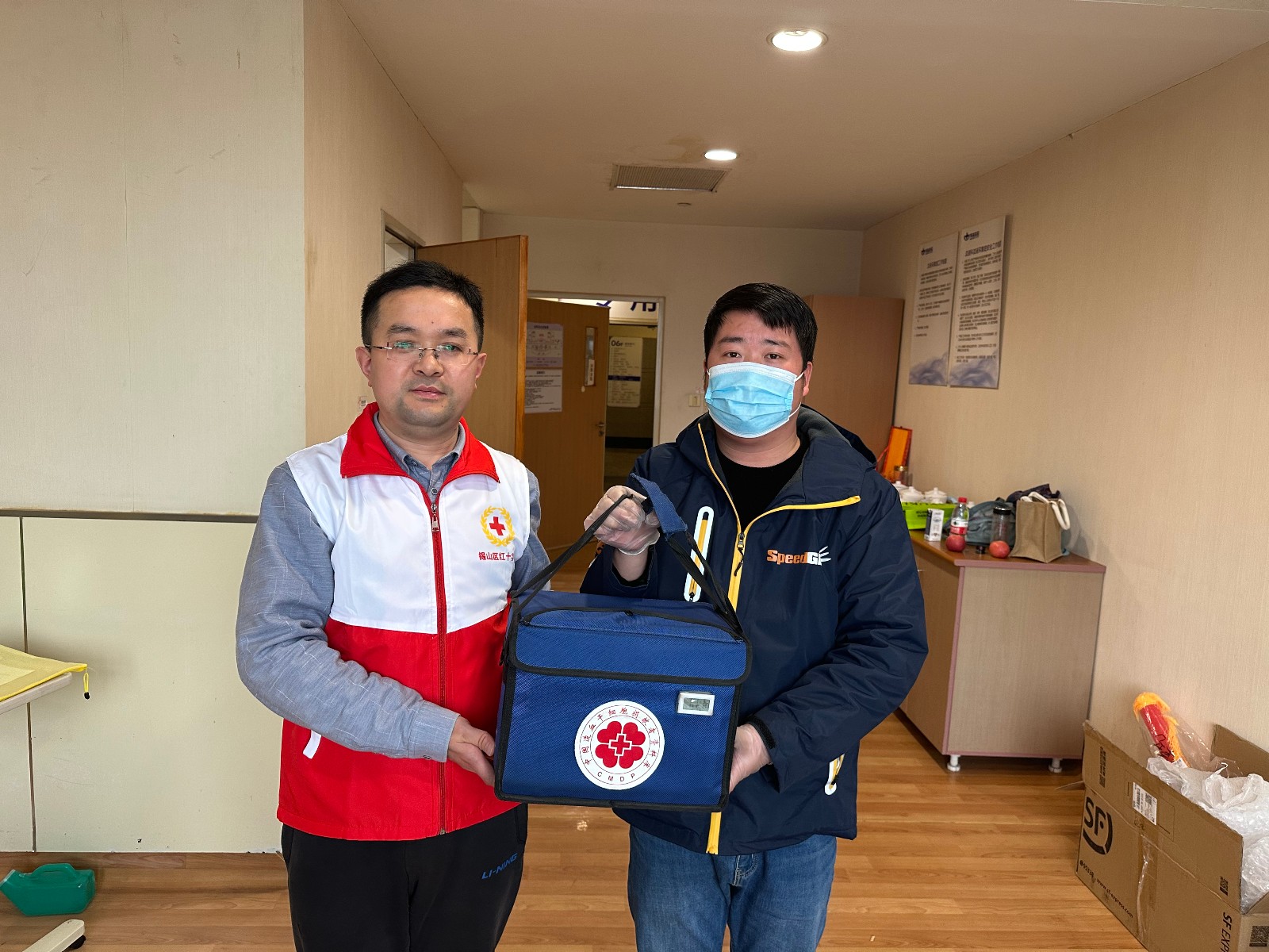 14日下午,杨志在朋友及区红十字会工作人员的陪同下凯旋。区红十字会副会长顾艳献花,向他致以崇高的敬意和诚挚的问候,安镇街道红十字会相关负责同志一同参加。