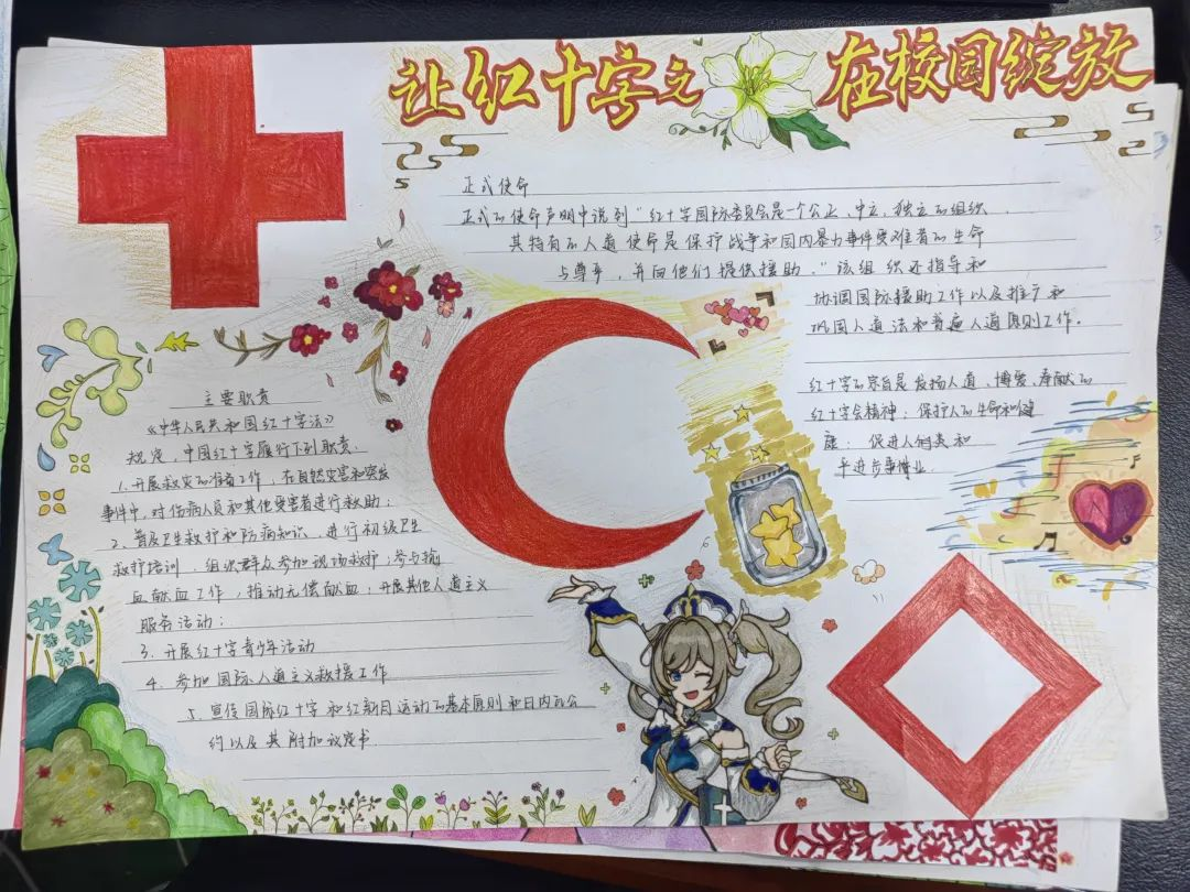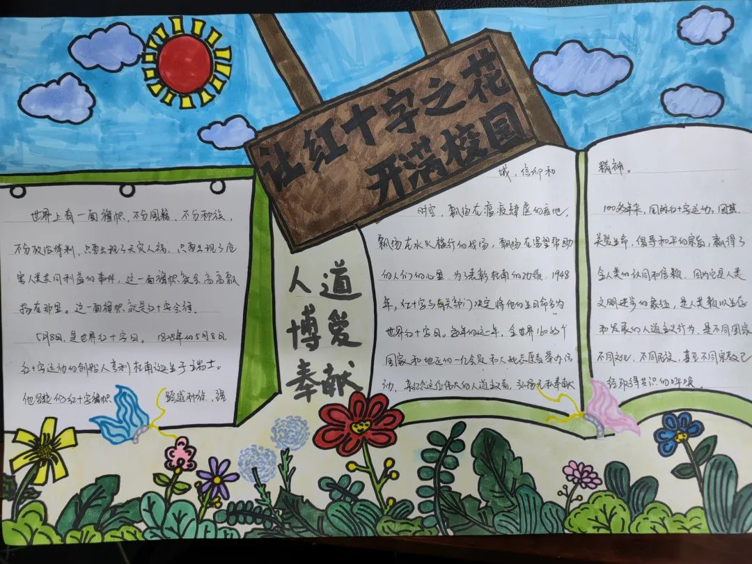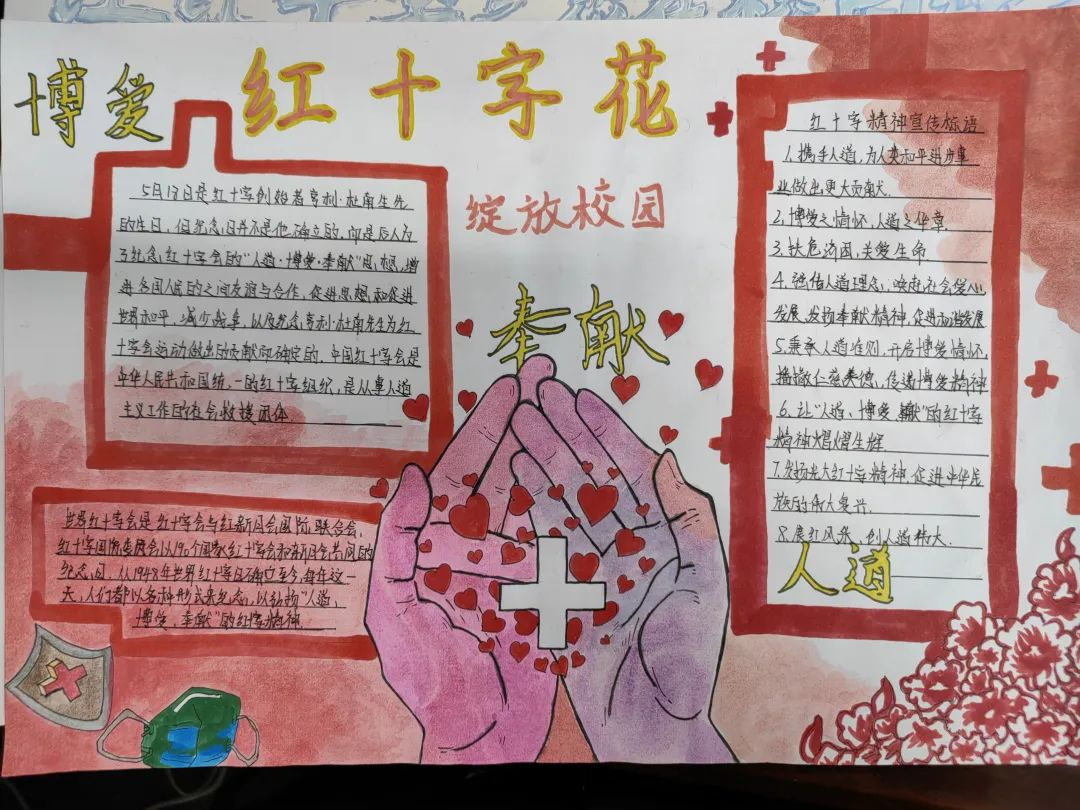学校在发出“红十字之花 在校园绽放”红十字主题宣传后,各班积极参与,共收到50多份手抄报作品,经过专家组评定,共评出8个一等奖、4个二等奖,和6个三等奖。部分作品展示: