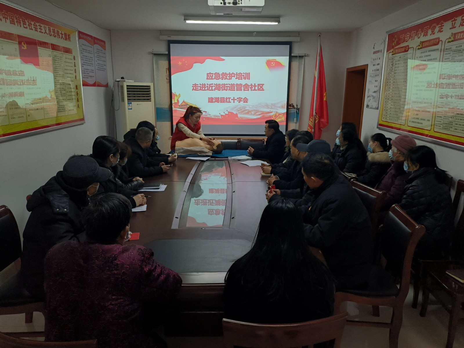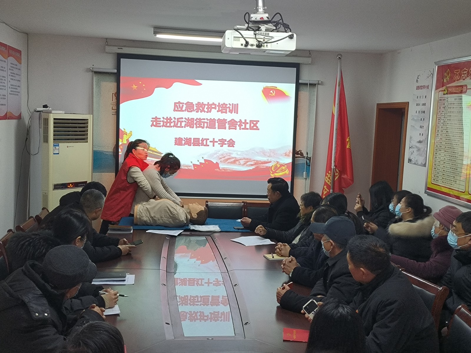 为积极响应县文明城市创建办公室工作要求,建湖县红十字会2月20日走进建湖县近湖街道管舍社区开展自救互救应急救护知识与技能培训,20多名社区党员参加此次培训活动。