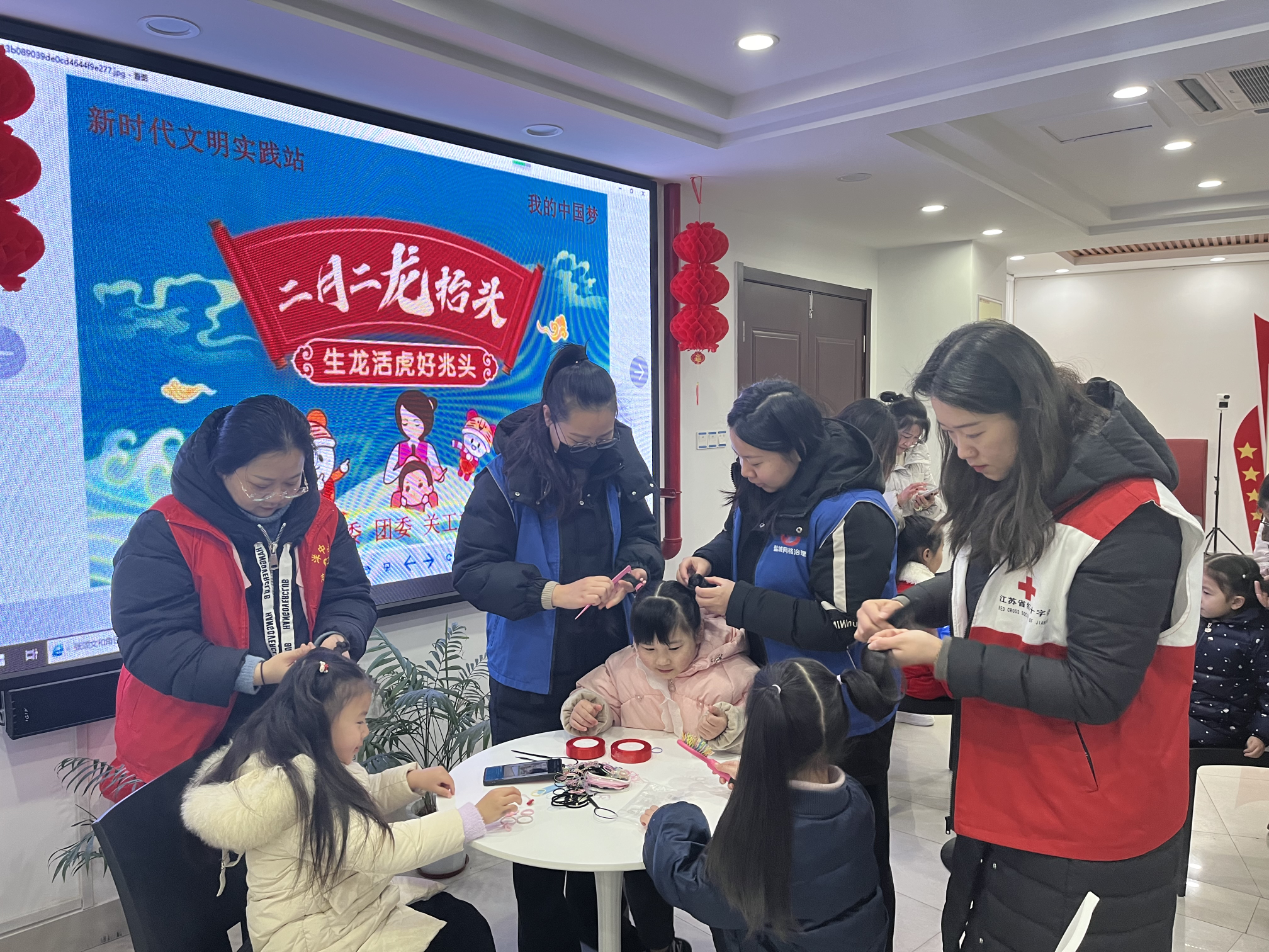 农历二月初二又称春耕节,在我国民间传统里,这一天,大人小孩都会去剃头,希望新的一年里能讨个“好彩头”。2月21日一大早,亭湖区毓龙街道洋中社区红十字“博爱家园”就热闹起来了,社区居民们欢聚在这里,参加“二月二龙抬头、生龙活虎好兆头”志愿服务活动,大家在互动参与中感受传统文化的魅力,传递活力萌发的春之气息。