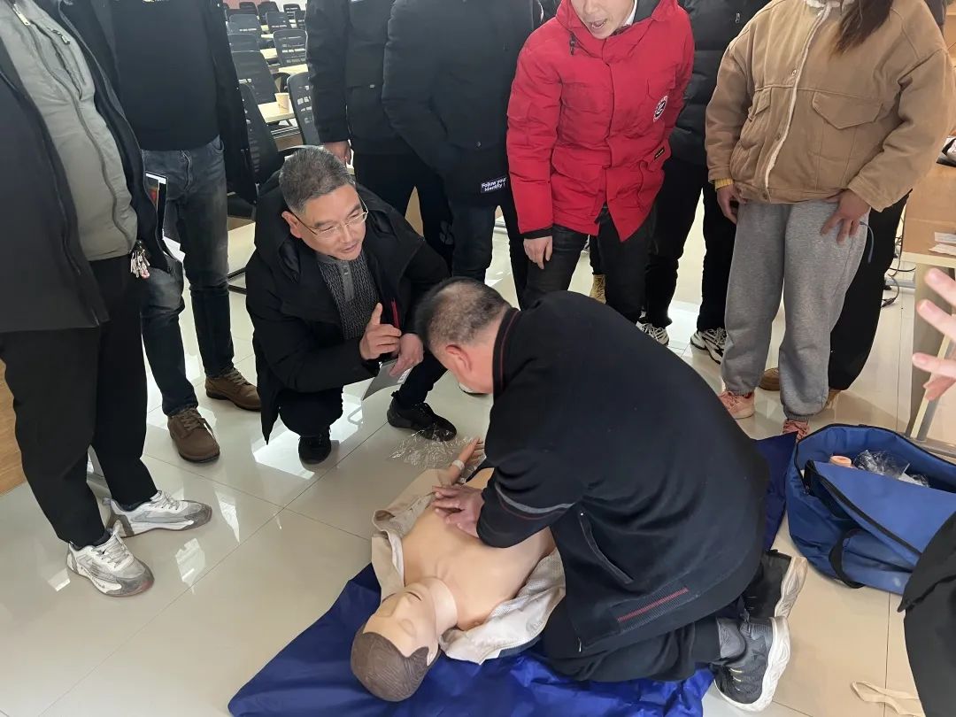 此次培训共分为理论培训和实际操作两个部分。活动现场培训老师通过通俗易懂的语言为大家讲解了相关救人的经验,当面临突发意外时,如何快速进行自救或寻求帮助等,并播放PPT进行台上授课、台下模型演示等形式,详细讲解心肺复苏知识要点、常用急救技能等内容。同时,针对心肺复苏术知识,利用人体模具为大家现场演示了胸外按压、人工呼吸等心肺复苏技术。