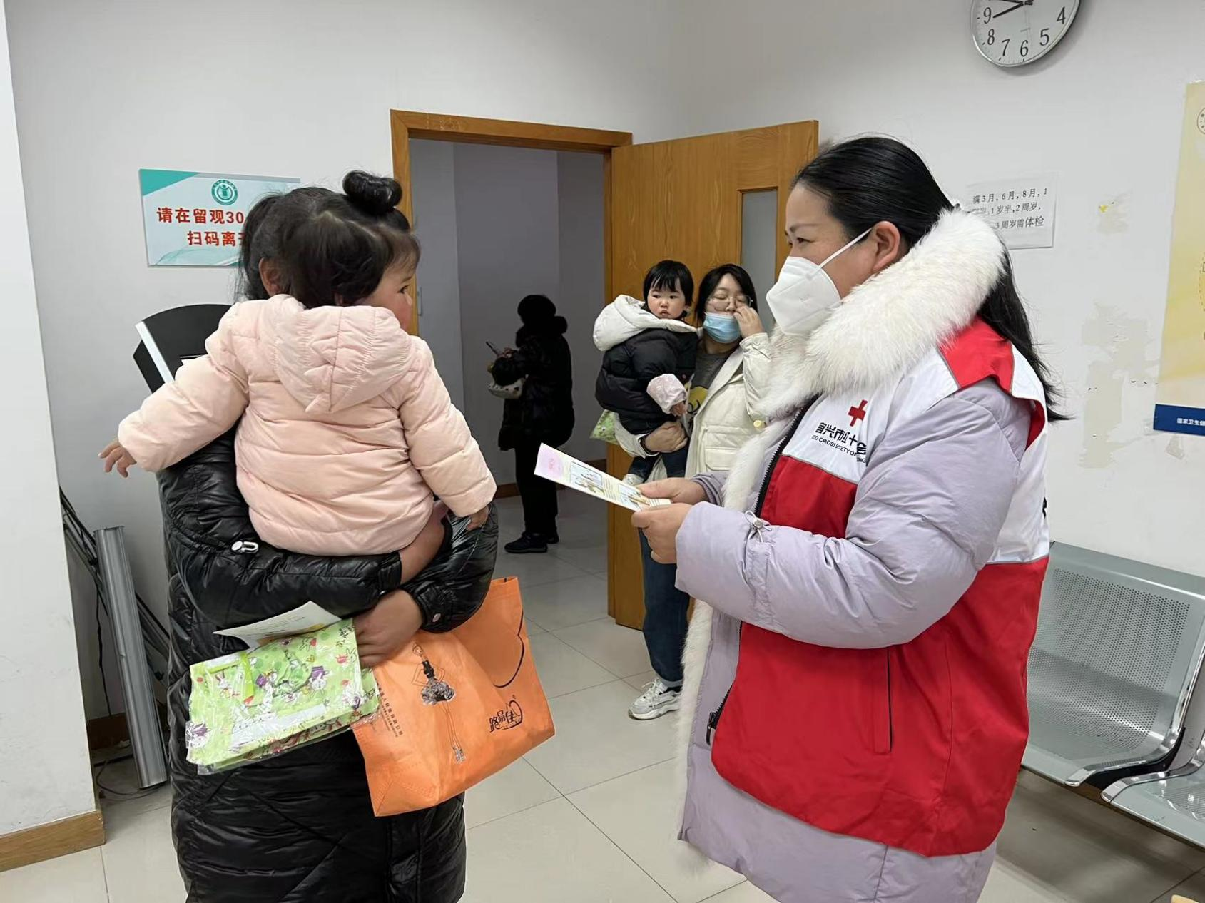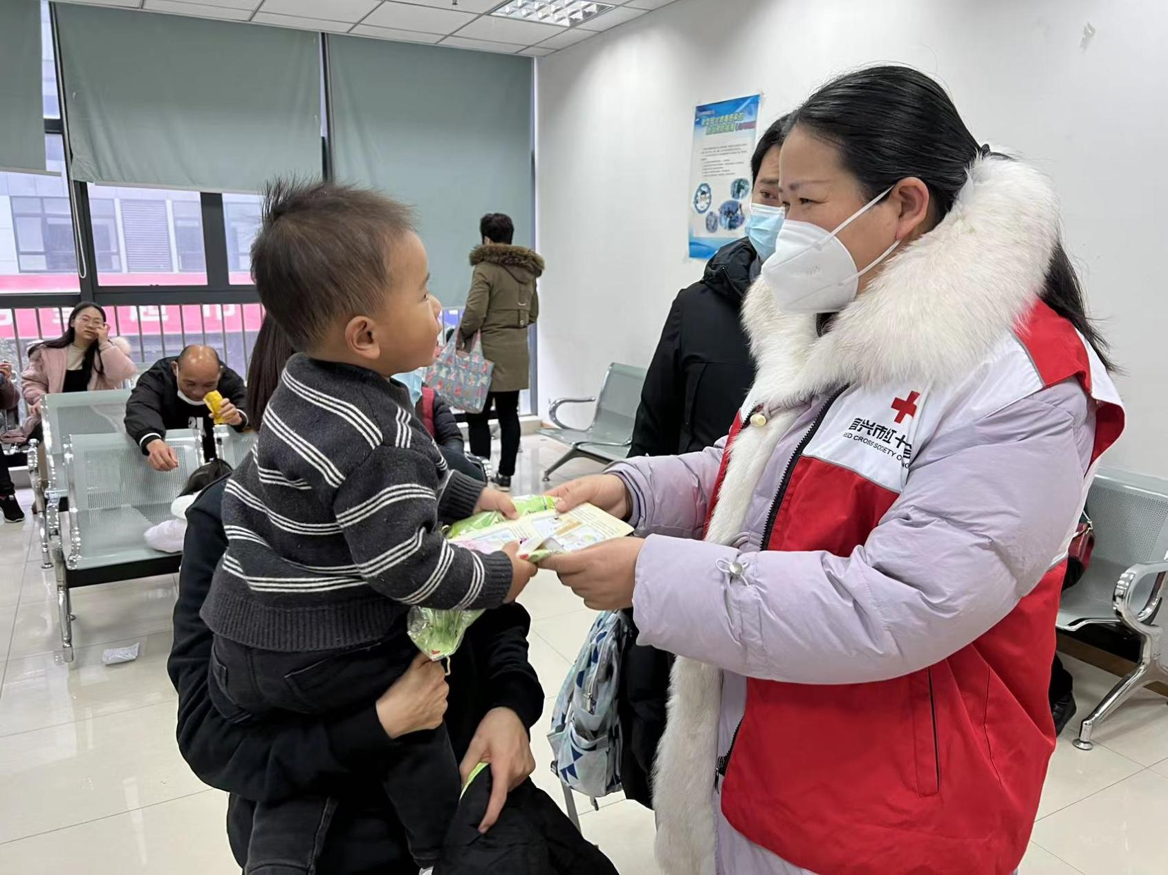 2月7日一早,小屋辅导员和红十字会工作人员来到屺亭街道社区卫生服务中心疫苗接种留观室进行宣传。志愿者们主动向家长们介绍向日葵亲子小屋的性质和活动形式,发放宣传手册和宝宝罩衣。