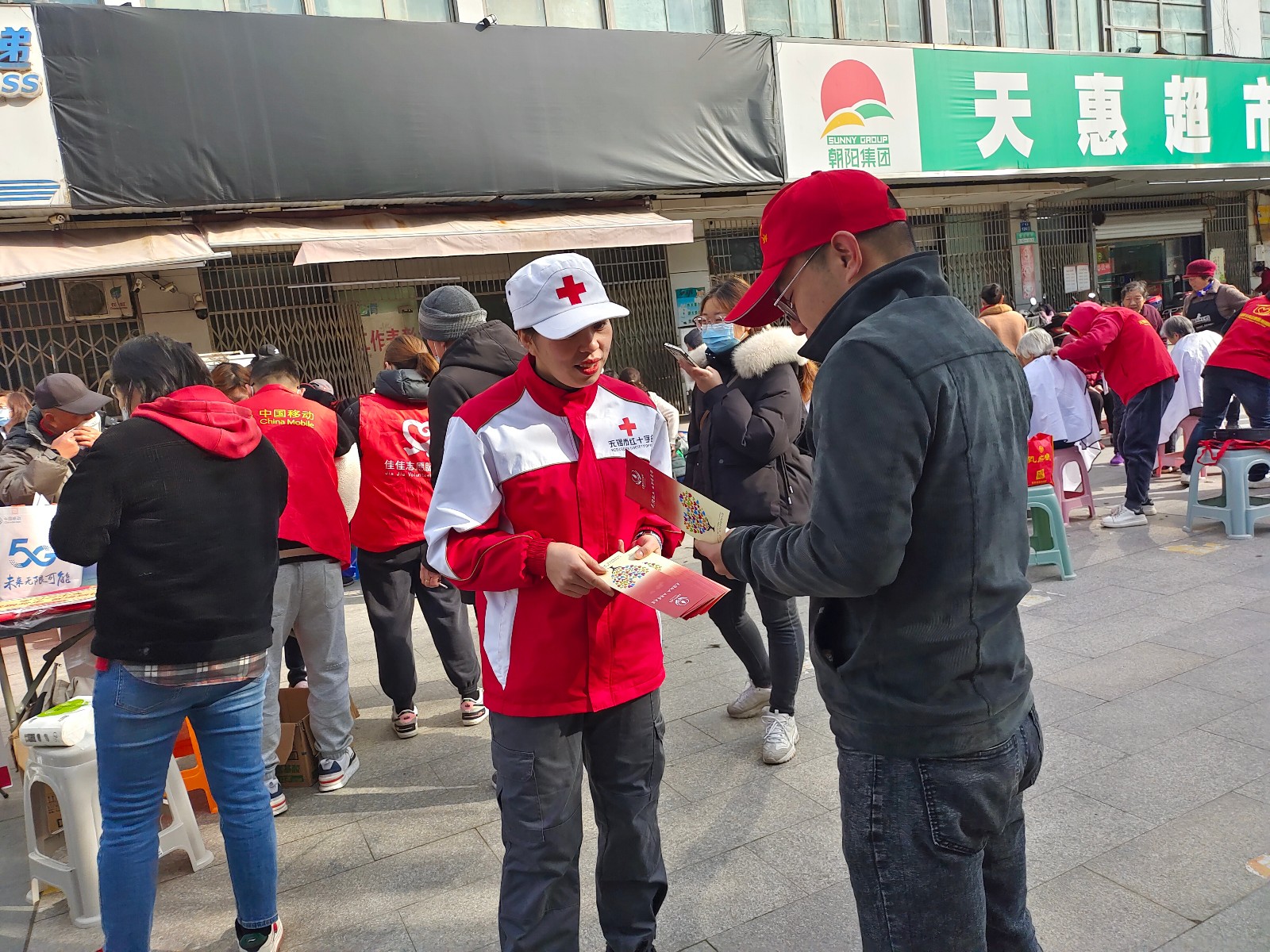2023年2月21日,无锡市红十字赈济救援队在广丰社区博爱广场开展公益性志愿服务活动。活动现场,队员们向居民普及防灾减灾知识、讲解无偿献血法律法规、传授急救知识和技能,让居民了解心肺复苏、外出血止血包扎处理、意外伤害和突发事件逃生自救的基本要领和技能,居民们兴趣盎然,纷纷参与练习技能操作;现场志愿者们还为大家提供了测量血压、理发等便民服务。据统计,活动当天发放各类宣传折页和宣传用品500余份,受益群众600余人。