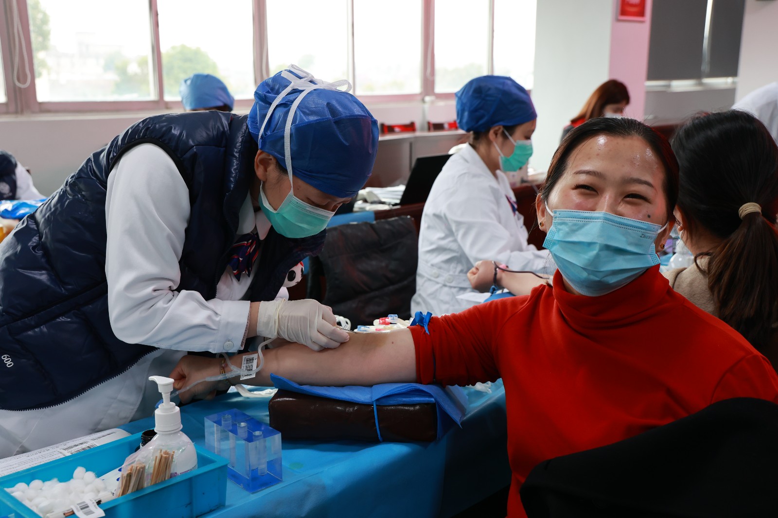 活动当天虽然寒风凛冽,但是志愿者们热情十足,早早就开始排队等候。在志愿者和工作人员的耐心引导下,大家有条不紊地配合着体温测量、健康征询、信息登记、血液初检、正式采血等工作,整个过程秩序井然。