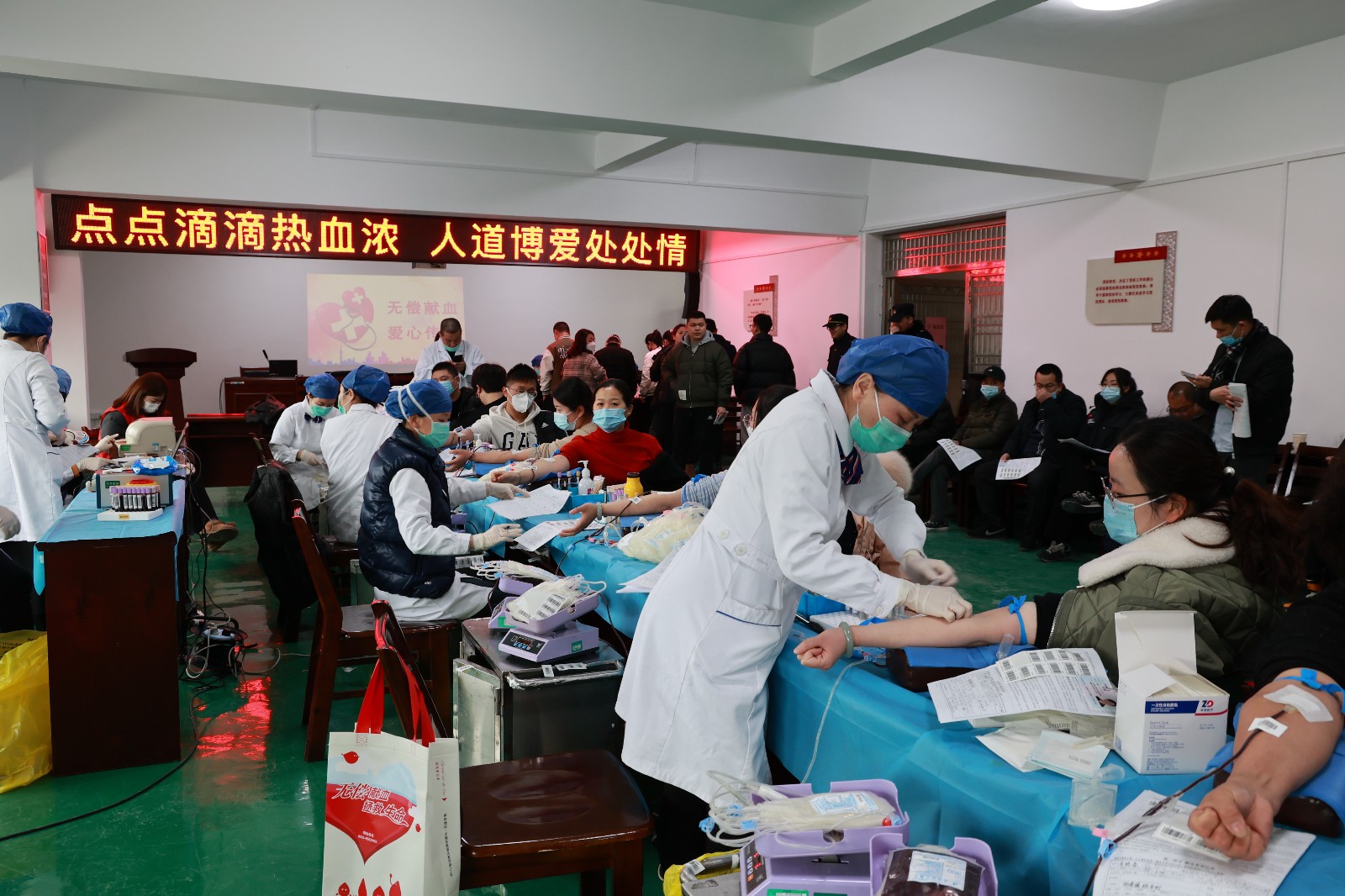 为弘扬“奉献、有爱、互助、进步”的志愿服务精神,缓解疫情过后临床用血供需紧张的局面,2月23、24日,胡埭镇开展了无偿献血活动。在胡埭镇、村(社区)各级红十字会的大力宣传下,广大爱心群众积极响应,两日时间,共有330人次全血捐献,捐献血量达98650毫升,并有12 人登记加入了中国造血干细胞捐献者资料库。