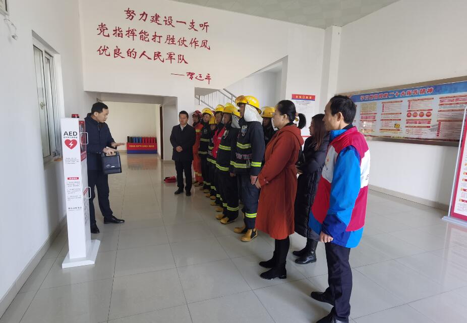 3月3日上午,长沙镇红十字会主管及分管领导带领镇红十字会志愿者走进阳光岛专职消防救援队开展志愿活动,为消防队配备安装AED除颤器,并请专业人员讲解心肺复苏、AED使用等应急救护知识。