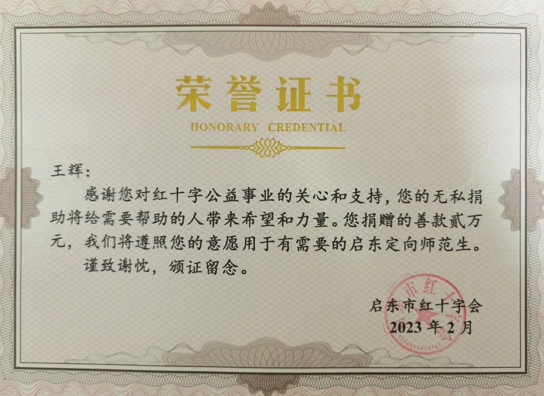 故事还得从今年大年初十说起,一大早,王辉裹着大衣、顶着寒风,骑着电瓶车赶到市红十字会,一举捐款2万元,希望帮助家庭困难的乡村定向师范生完成学业,助力乡村教育振兴。
