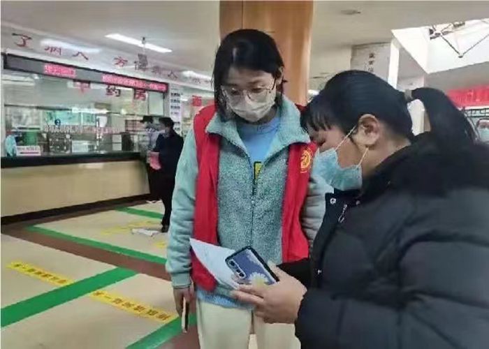 商学院的学生志愿者们来到丹阳市中医院为患者提供就诊引导志愿服务,以“微笑、周到、细心”践行新时代雷锋精神。