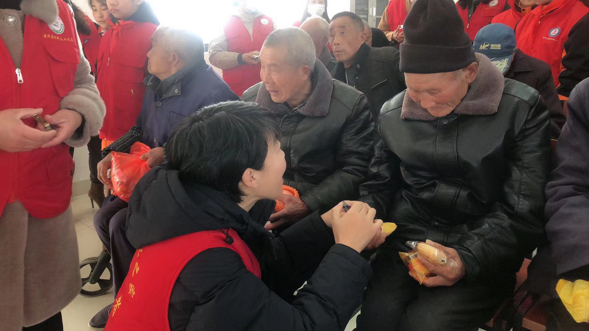 在高新区敬老院中,志愿者们为老人测量血压,理发,表演节目,整理房间,跟老人们手拉手谈谈话交交心,为老人们准备丰富的晚餐和节目,让老人们感受到陪伴和开心。