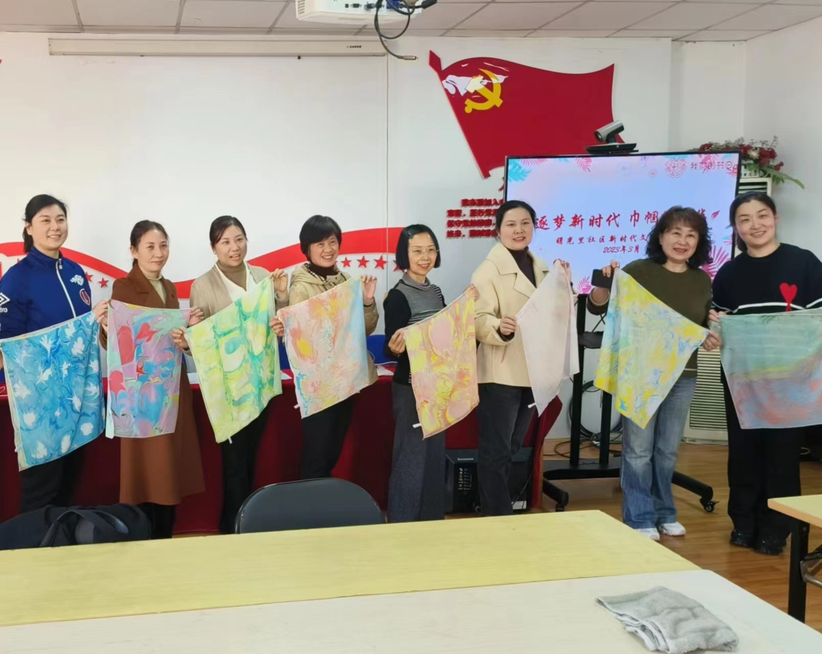 展巾帼新姿 扬时代风貌值3.8为庆祝“三八”国际劳动妇女节,丰富女职工业余文化生活,展示女职工积极向上、创优争先的精神风貌,同时进一步弘扬中华民族优秀传统文化,深入挖掘浓厚文化底蕴。 3月7日下午,南京市红十字会、秦淮区红十字会在曙光里社区联合开展“非遗之美,‘布’同凡响”古法非遗丝巾扎染三八妇女节手工体验活动,20余人参与了活动。