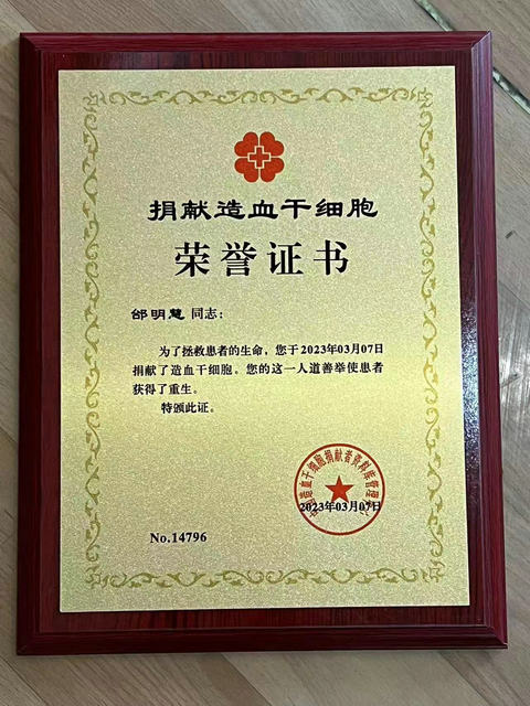 邰明慧,女,1982年2月出生,海安市人力资源和社会保障局就业处副主任。2020年疫情期间,海安市采供血量急剧下降,身为共产党员的邰明慧积极响应市疫情防控指挥部的号召,带头参加无偿献血并加入中华脊髓库志愿者行列。2022年11月24日,邰明慧与一名白血病患者初步配型成功,经过高分辨配型及体检,今年2月13日,江苏省造血干细胞捐赠者资料库管理中心通知其进入待捐献状态。
