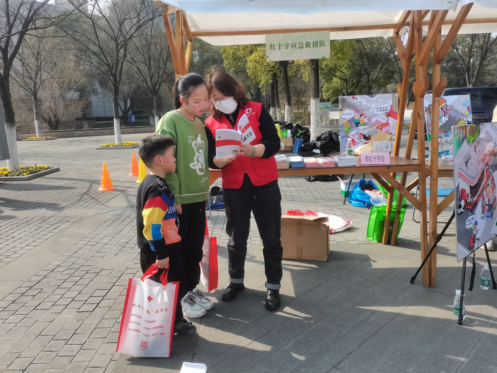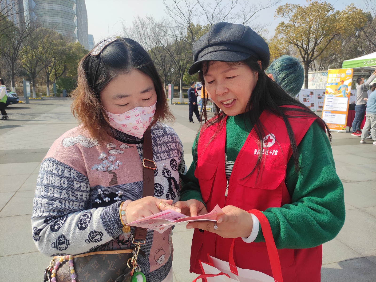 3月4日下午,张家港市红十字会组织红十字应急救援志愿者参与“志愿益集”广场志愿服务活动,向过往群众和其他团队的志愿者发放应急救护知识手册、红十字运动、遗体器官捐献、人道救助等宣传资料。耐心地向市民讲解面对心脏骤停患者时的急救措施和注意事项,手把手地指导他们现场操作,并就市民对遗体器官捐献、人道救助等问题一一解答。