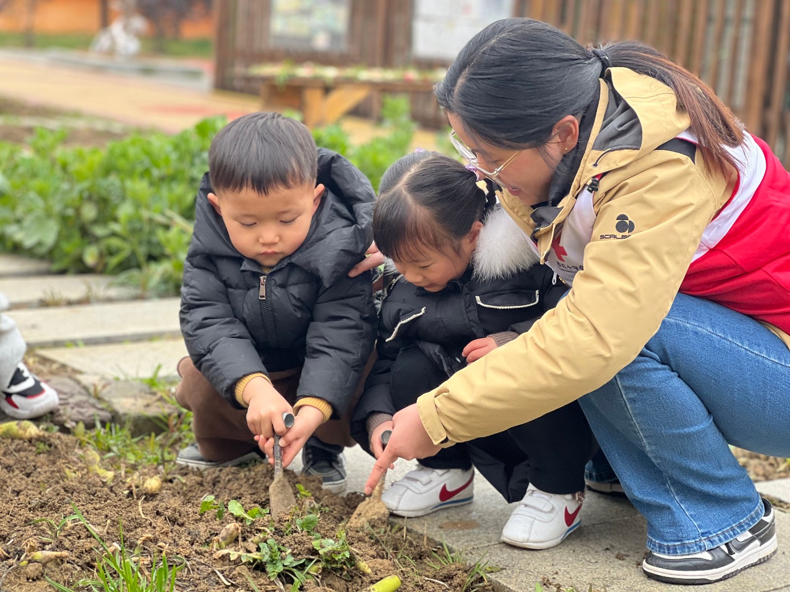为了让孩子们在自然中发现植物生长的奥妙、体验种植的乐趣,近日,惠山区堰桥中心幼儿园红十字志愿者在园内给孩子们开辟了一片种植区,让孩子们亲近自然、鼓励孩子们参与种植。