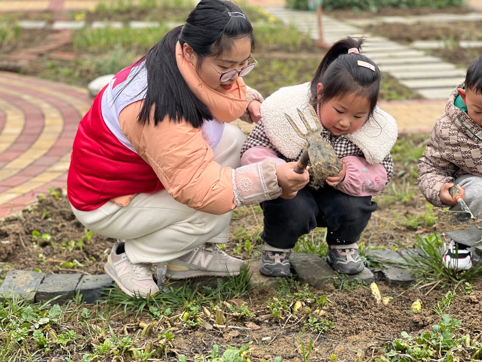 种植活动开始,孩子们拿着小工具一起给土地松土、除草、播种,通过仔细观察,体验植物的生长过程,在“阳光田园”中发现种植的乐趣,孩子们都忙得不亦乐乎。