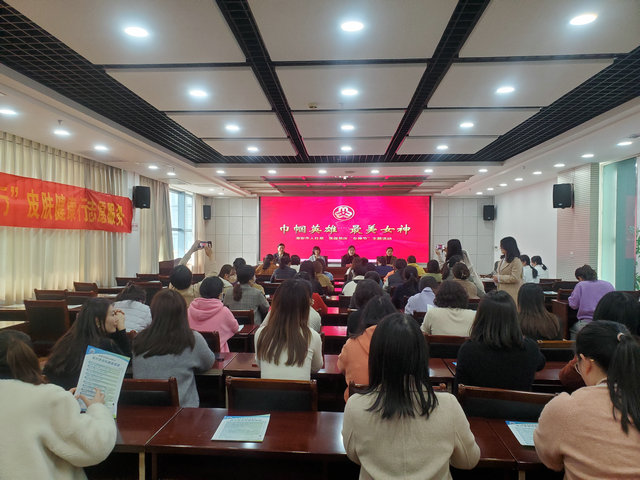 3月8日下午,医院党支部书记、常务副院长吴萍华带领院红十字会及“醫路同行”志愿服务队队员们走进市人社局、医保局为女干部职工送上皮肤保养、皮肤美容义诊等活动。市人力资源和社会保障局党组成员、副局长王筱莉主持活动,市人力资源和社会保障局妇联主席、人才交流服务中心主任卢会伶,市医疗保障局妇联主席、医疗保险稽查大队主任周建莲出席了活动,人社局、医保局近100位女职工参加了活动。