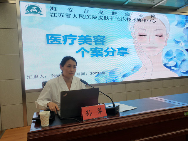 “这三幅图哪个可以观察、哪个需要紧急处理、哪个不需要处理……”医疗美容科主任孙萍以幽默风趣的语言和图文并茂的方式向大家分享了近年来的医美案例,并进行了医美知识科普。