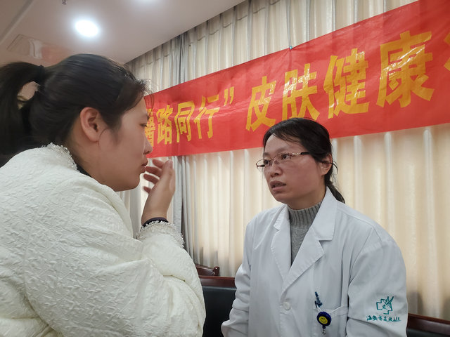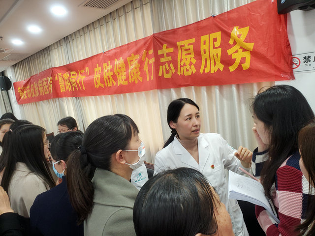 义诊现场,志愿者们热情细致地为需求者检查诊疗,耐心细致地解答她们提出的皮肤健康方面常见问题,并进行健康知识宣教,引导女性朋友增强自我皮肤健康意识,根据个别需求制定了个性化治疗方案。