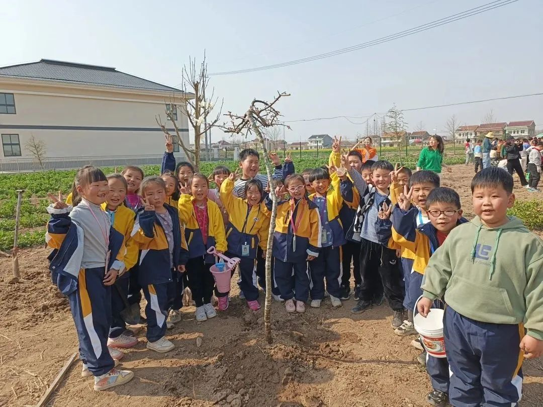 伴随着温暖的春风,孩子们兴致勃勃地来到了合乐农场植树。大家井然有序地挖坑、扶苗、铲土填坑、踩实、浇水,并与亲自栽种的小树苗合影。