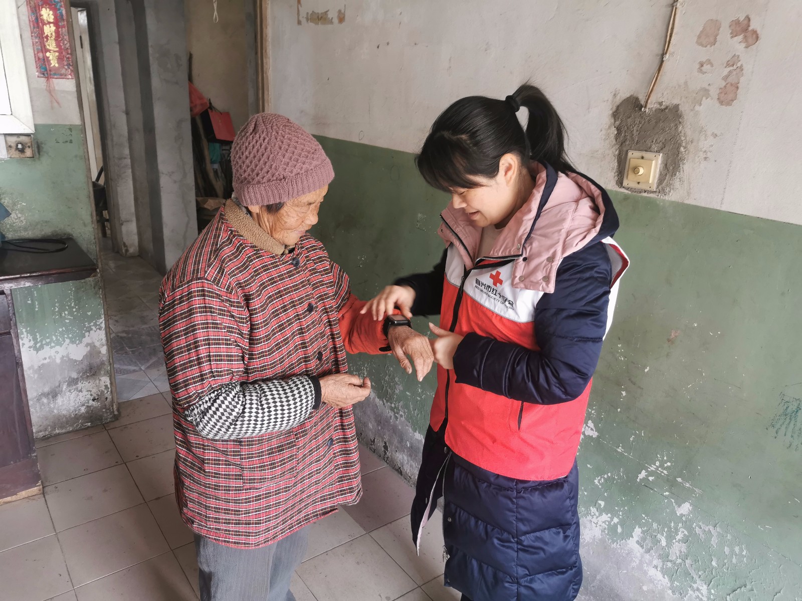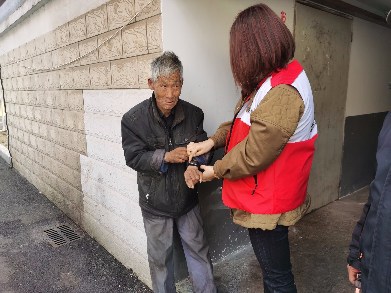 南岳、新乐等7个村社区的红十字志愿者对佩戴手环的易走失人员逐个走访,了解手环显示、充电等是否正常,佩戴使用情况,易走失人员的家庭及个人状况,为他们排忧解难。