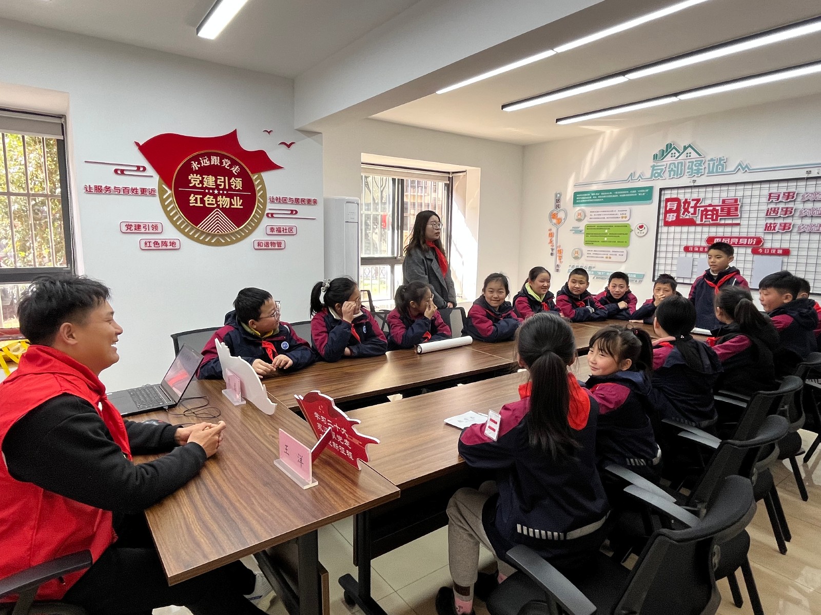 在林陆巷社区,队员们在社区工作人员的带领下,见到了早早等候着的李士路叔叔。队员杨康琦作为代表为李士路叔叔戴上了红领巾。其他队员也纷纷献上自己精心准备的礼物,书法作品、手工贺卡、学校书法台历等。队员们聆听了李士路叔叔讲述那段难以忘怀的经历后,对那段经历非常感兴趣。