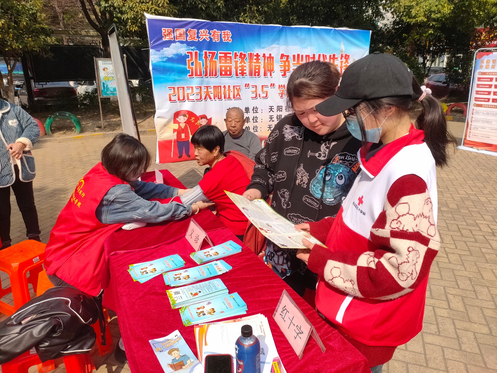 活动现场,天阳社区红十字会开展了“学雷锋健康义诊”、“雷锋志愿便民行动”等新时代文明实践“学雷锋”系列服务。同时,由红十字志愿者向居民们号召积极捐献造血干细胞,现场吸引大量社区居民参与。