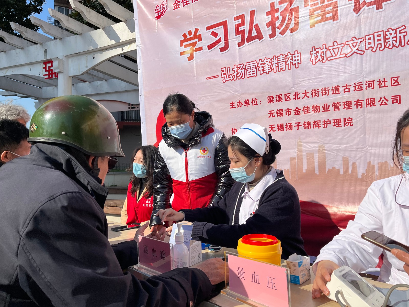 为宣传和弘扬雷锋精神,2023年3月3日上午,在第60个学雷锋纪念日到来之际,梁溪区北大街街道古运河社区红十字会在辖区禾嘉苑小区中心广场组织开展了“弘扬雷锋精神 树立文明新风尚”为主题的志愿服务活动,以多种形式掀起了一股“学雷锋”的热潮。