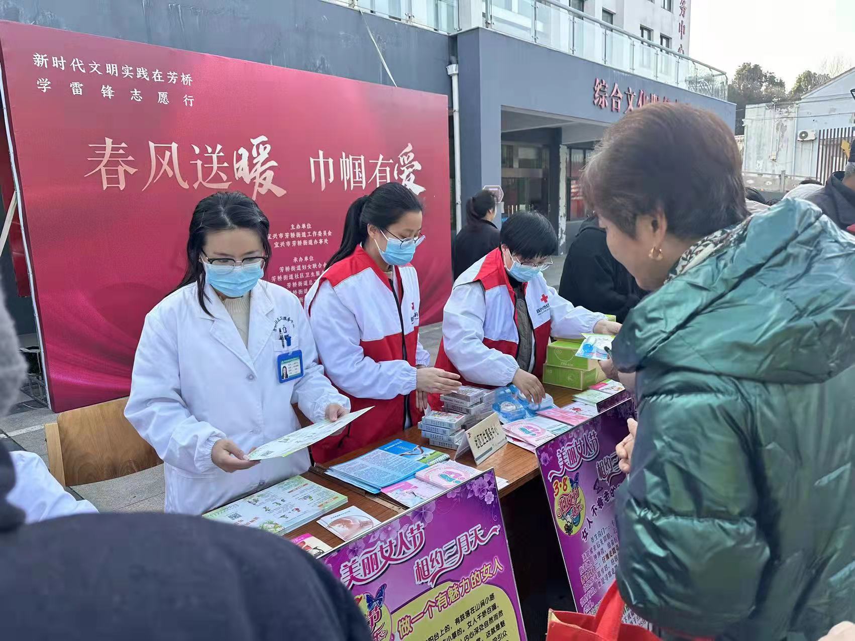 3月3日上午,宜兴市芳桥街道红十字会联合社区卫生服务中心、社会事业局、工会、司法所、纪委等多部门开展了“春风送暖,关爱女性”广场活动。