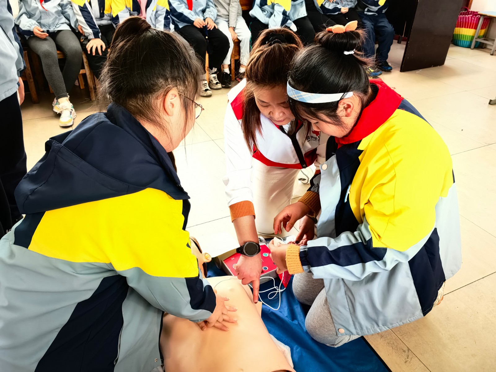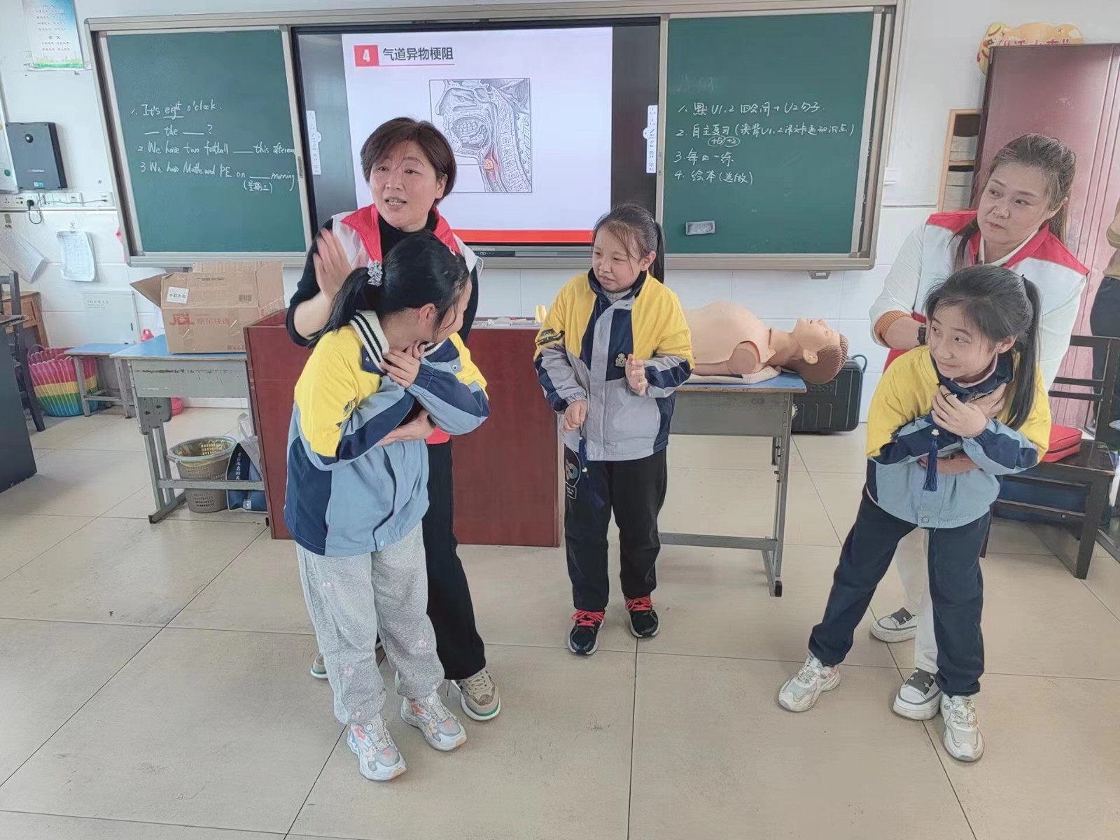 当钱军、张淼两名师资到达教室时,孩子们已经将课桌排好,整整齐齐围坐一圈等待老师上课,当天的急救知识主题课程在孩子们好奇、期待的目光中开启了。