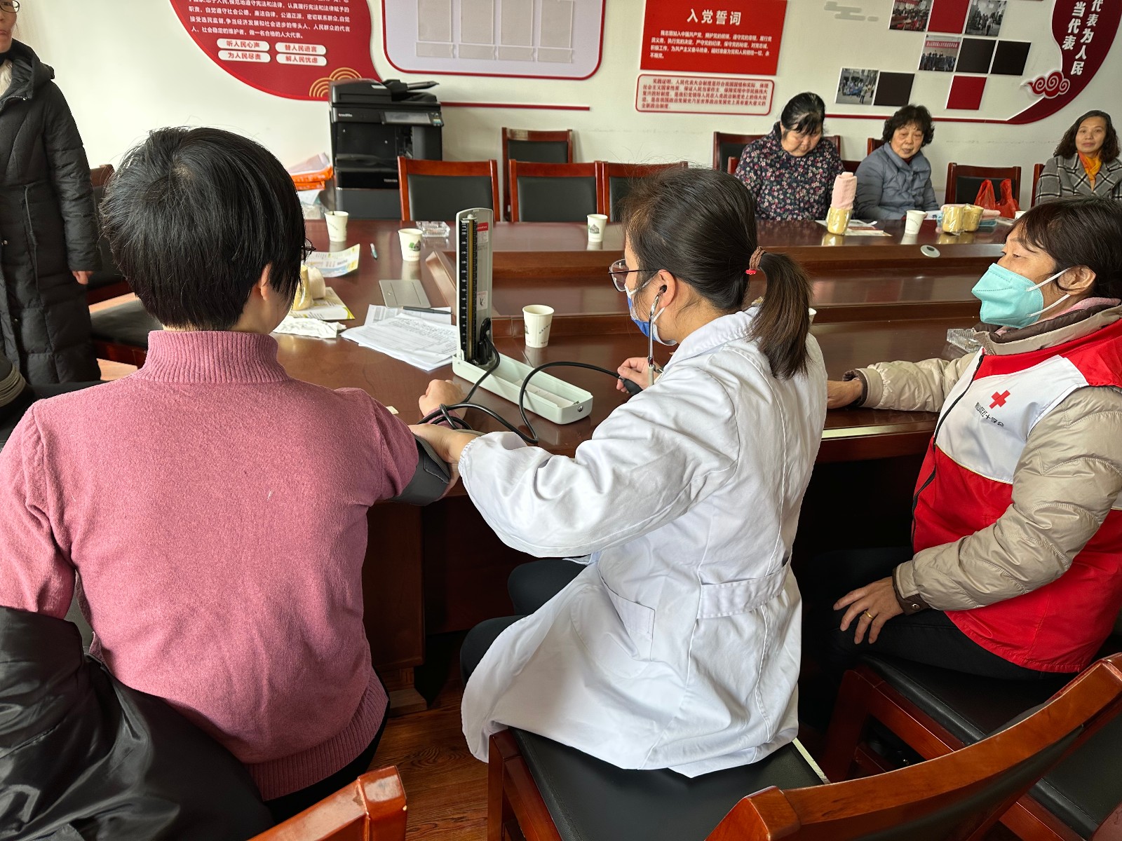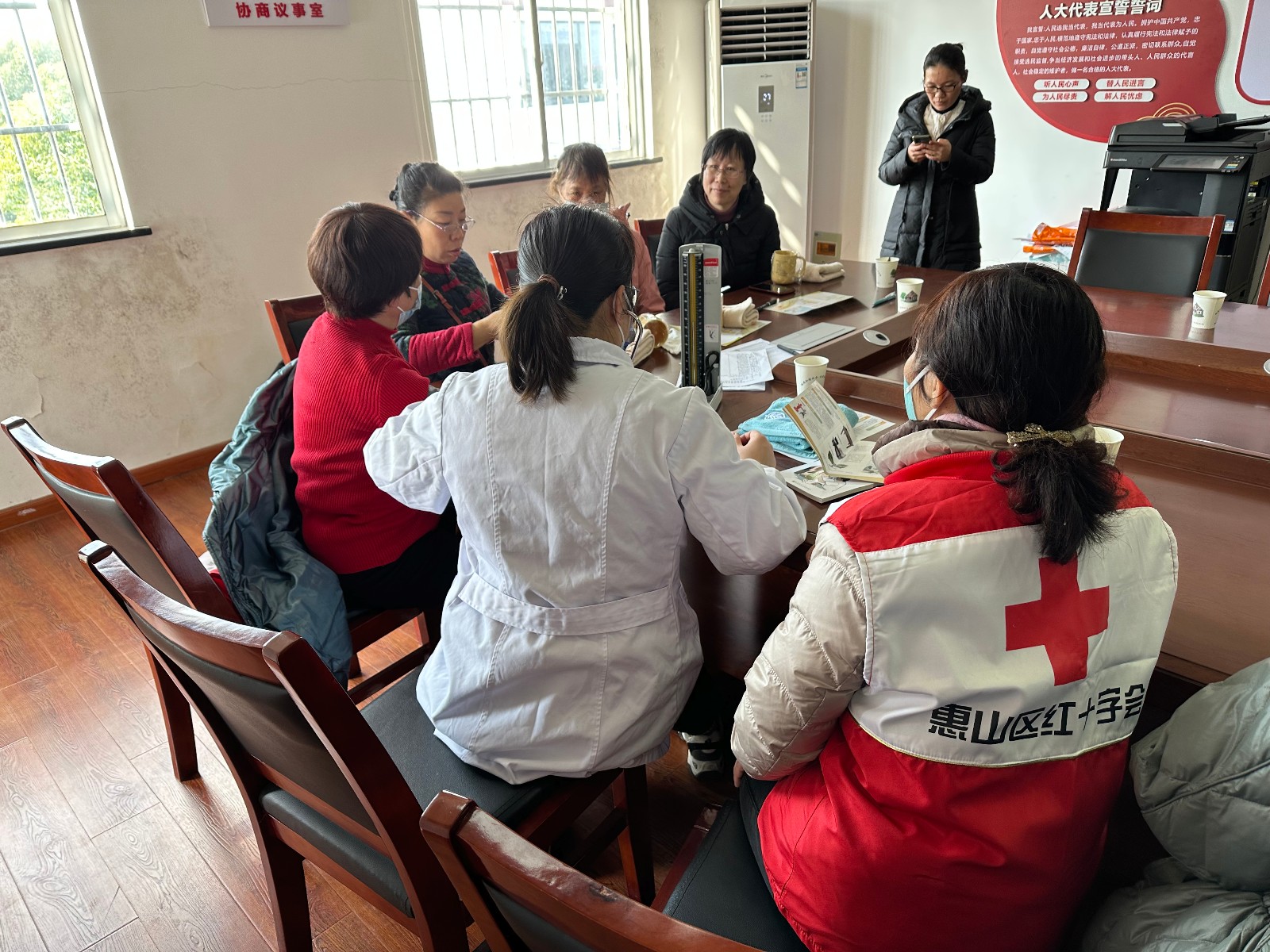 春雨助梦润青春,雷锋精神暖人心。为进一步培养学生良好的思想道德品质,增强居民健康保健意识,宣传正确预防和控制高血压病等的相关知识,传播“奉献、友爱、互助、进步”的优良精神。3月2日上午,惠山区堰桥街道堰北社区红十字会志愿者与医务室医生们在社区活动室开展“关爱老人 健康同行”健康主题活动。
