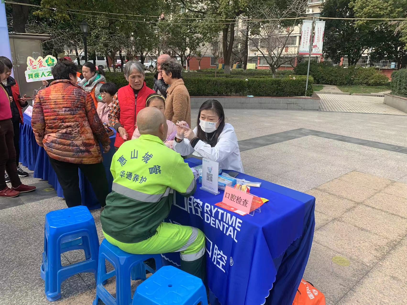 活动现场还有很多穿着白大褂的志愿者医生有的在认真专注的为前来参加活动的居民们检查牙齿,耐心地解答他们提出的问题。“小宝,你的牙齿有点蛀牙哦,要少吃点糖,每天睡前都要认真刷牙。”只听一名医生志愿者一边检查口腔,一边温柔的告诉前来检查的小朋友要注意口腔健康。有的志愿者医生在为前来咨询的社区居民测量血压,并发放健康教育宣传手册……
