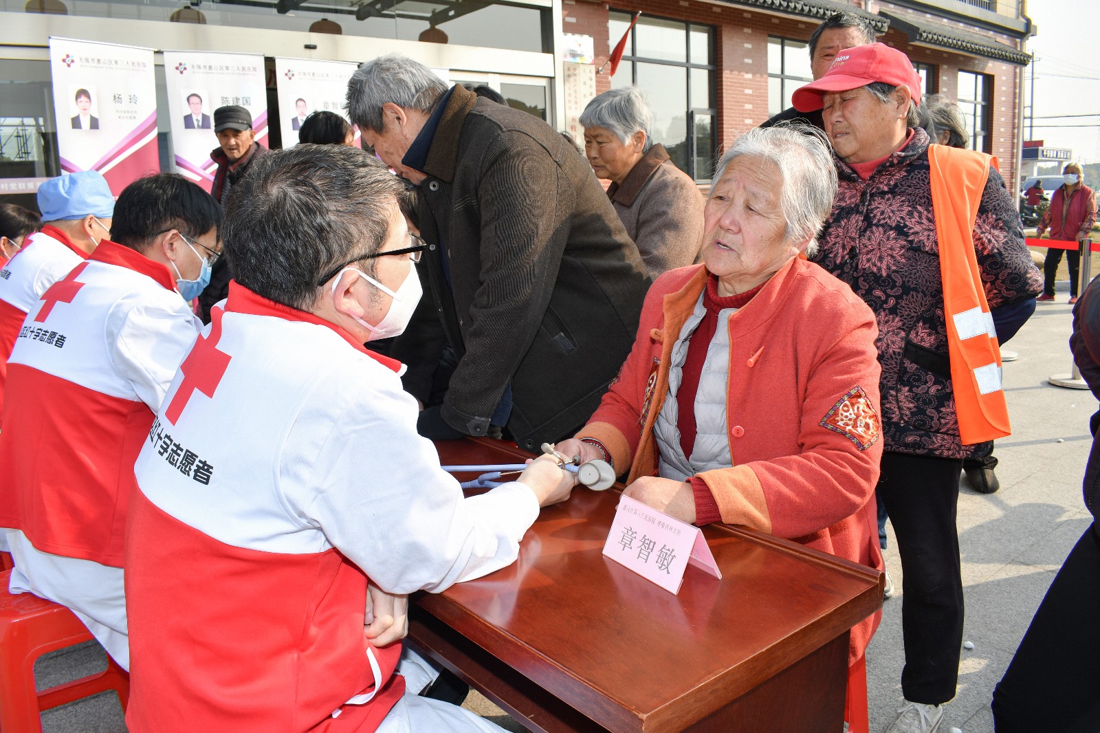 此次活动,特别邀请惠山区第三人民医院的主任医师们,为五牧村民的身体健康带来专业的就医指导。活动现场,志愿者们耐心地与前来就诊的群众沟通,望闻问切,仔细寻找病因并再三叮嘱用药和疗养方法,同时还提供了量血压、测血糖服务,让老百姓足不出村就可以享受一站式诊疗体验。