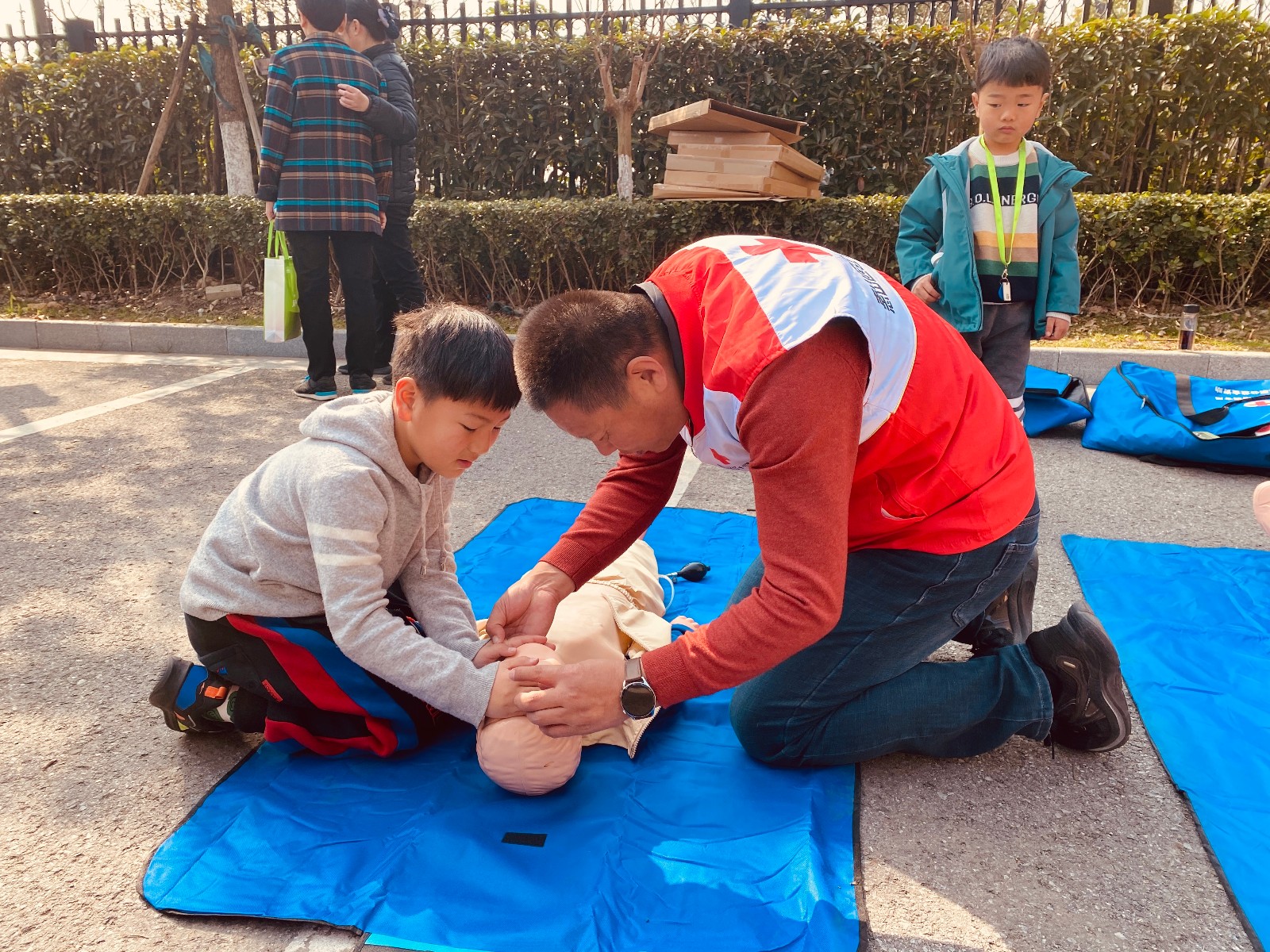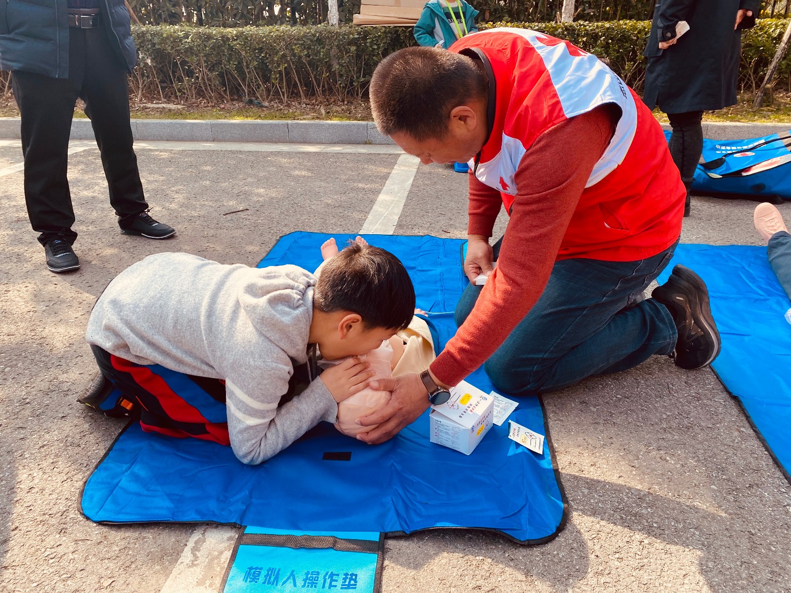 活动现场,红十字会志愿者陈老师结合日常生活和突发事件,用通俗易懂的语言生动、细致地向社区居民讲授了突发事件的应急必备常识、急救须知、常规CPR(心肺复苏)方法、海姆立克急救法、意外性伤口处理等急救措施,其中对心肺复苏进行了现场示范和操作训练,对每一环节的体位及各种手法等细节进行了详细的演示,并邀请居民朋友进行现场演练。旁边的小朋友也被吸引过来,自告奋勇道:“老师,我也想学习心肺复苏。”陈老师通过形象扮演的方式,生动形象的带领小朋友按照心肺复苏步骤:“判断意识—心脏按压—开放气道—口对口人工呼吸—观察心肺复苏有效指征”来操作,从实践中了解了在紧急情况下进行心肺复苏的技能,掌握了基本的急救知识,同时也培养了小朋友的安全自护自救意识,为孩子的安全健康成长保驾护航。