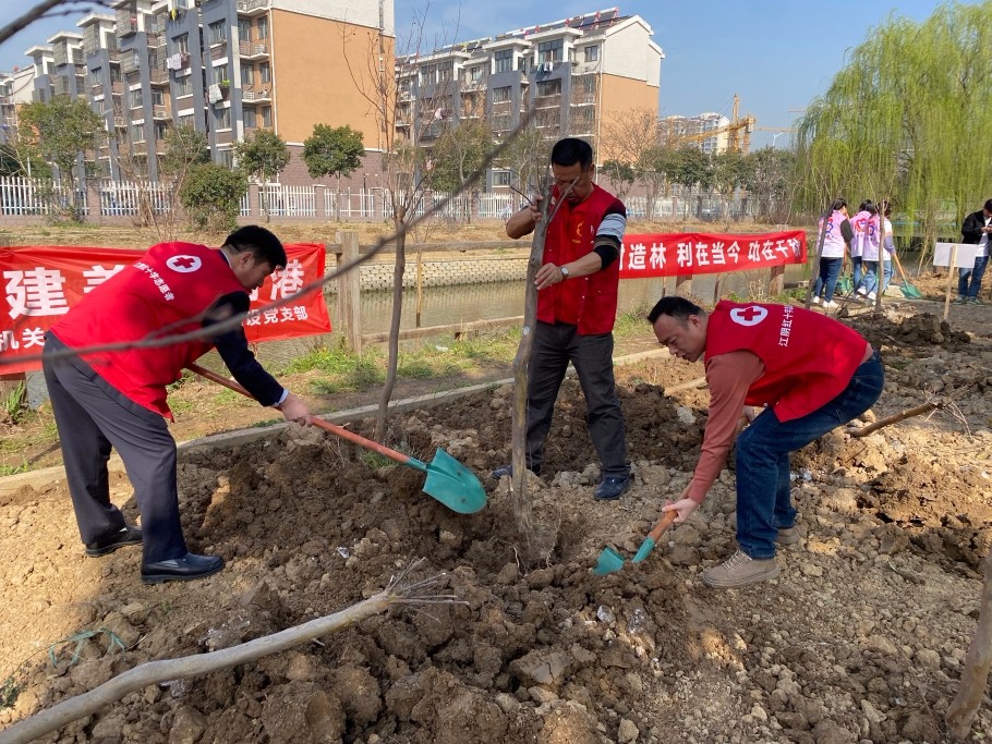 三月春光好,植树正当时。近日,利港街道办事处联合江阴市澄利建设有限公司及街道红十字志愿者在朝阳河畔开展了植树活动,助力打造清水美景,共建美丽幸福河湖。