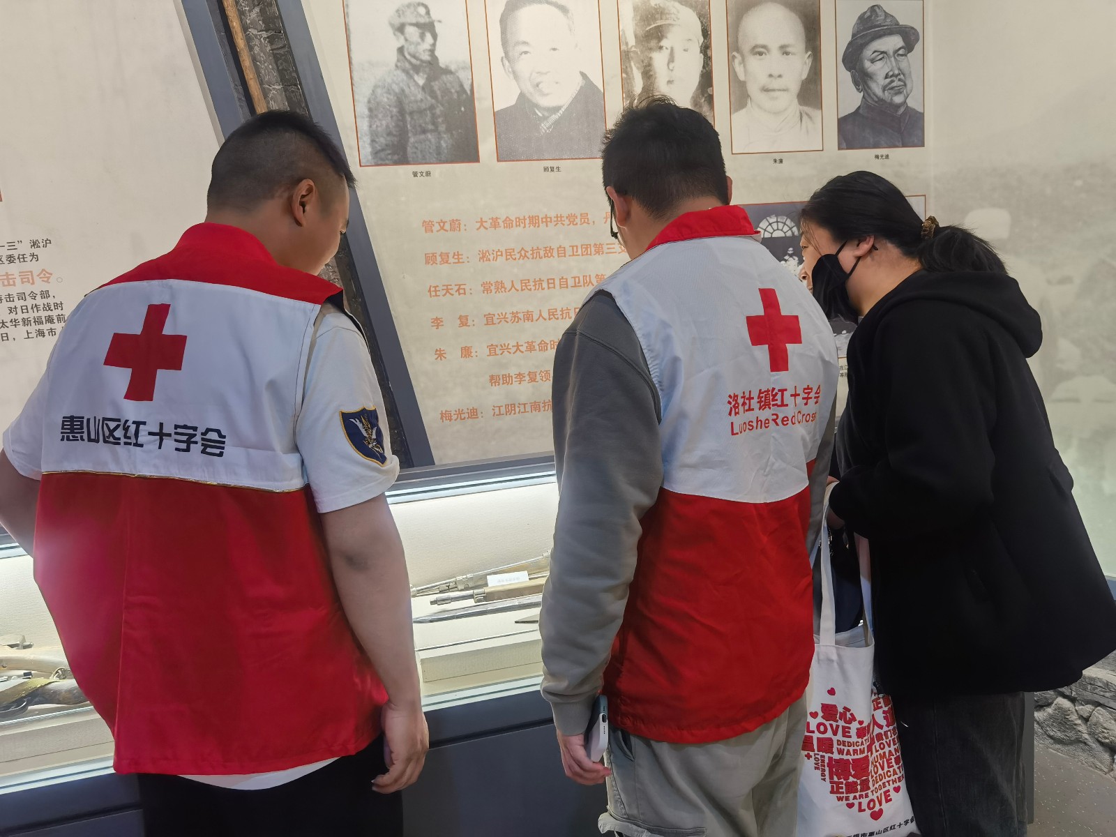 太华是抗日战争后期苏浙皖边区的革命根据地,俗称“苏南小延安”。位于江苏省宜兴市太华山有着厚重的历史文化,更有着光荣的革命传统。在纪念馆工作人员的指引下,一行人走进纪念馆大厅,映入眼帘的便是以“凯旋”为主题的新四军指战员群像雕塑,宏伟大气。馆内工作人员告诉我们:“那些在太华战斗过的新四军指战员往往不喜露面,因为他们觉得自己能够活下来已经很幸运,最值得被铭记的,是那些在战场上、斗争中牺牲了的同志。正因如此,馆内的新四军指战员雕塑都是随机刻画的人物。这里的雕塑纪念的是所有为革命付出牺牲的人。”身处奋进的新时代,红十字会志愿者们也要像这些满怀“大爱”的人一样,学习他们身上那股无私的奉献精神,积极弘扬“人道、博爱、奉献”的红十字精神。