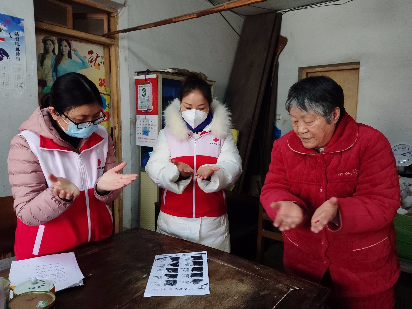 志愿者们来到居民家中,了解到5户家庭的老人目前均患有不同程度的慢性疾病。医务志愿者耐心询问她们目前的身体状况及饮食习惯等,并逐一为她们量血压,测血糖。指导他们日常用药及饮食调整等。检查结果显示,老人们血压、血糖情况均控制在比较正常的范围内。健康指导员志愿者依照健康生活方式,指导她们如何控油限盐,如何日常生活养成健康的饮食习惯等,并手把手教她们做手穴保健操。