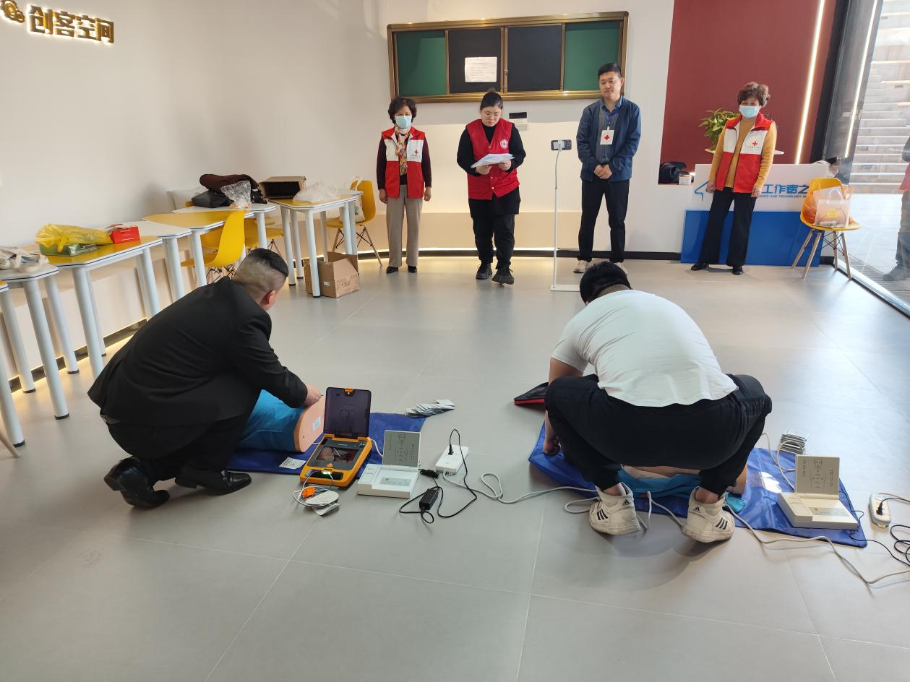 红十字应急救护培训师资吴季红,通过应急救护理论讲解,实操技能演示互动等形式,传授心肺复苏术(CPR)以及自动体外除颤仪(AED)的具体操作,帮助大家掌握应急处置技巧。各位学员们认真参与,理论学习后分组进行实操练习,老师手把手教学,逐一纠正动作,确保每一位同学都熟练掌握CPR+AED急救技能,并让同学们熟知在紧急关头的正确施救方式。培训结束后,学员们进行了理论和一对一的实操考核,考核全程进行录像并由师资做出专业指导,确保此次持证培训高质高效。