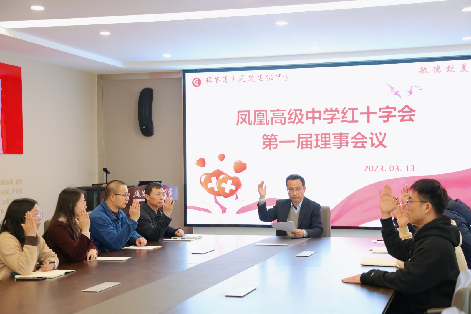 会议在庄严的国歌中拉开帷幕,市教育局基教科鞠凤老师宣读了建会批复并授牌,校红十字会筹备组长罗小兵汇报了凤凰高级中学红十字会筹备情况。