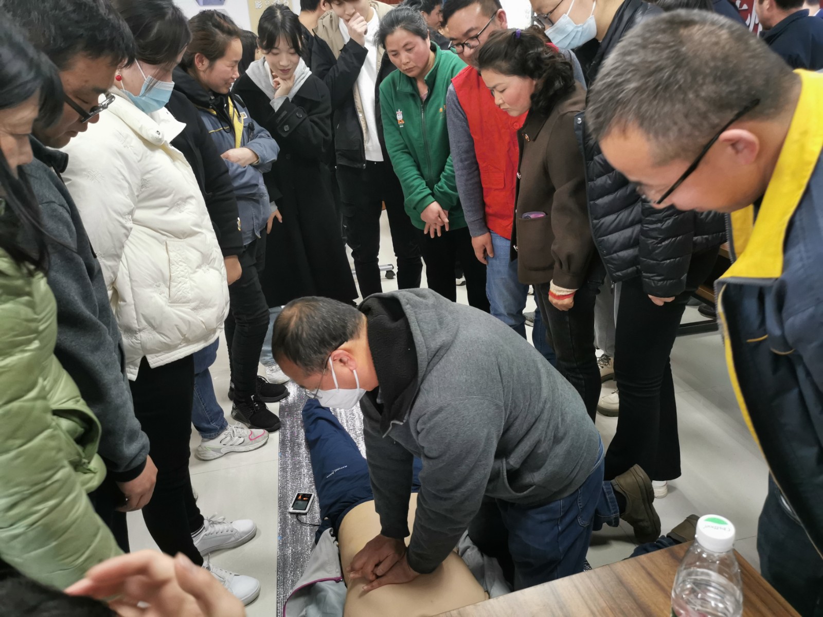 常熟市红十字会应急救护培训师、练塘中心卫生院副院长孙斌为参训人员进行了授课。课堂上,讲师从理论学习和实际操作两大方面对学员进行全方面的培训及考核。培训紧紧围绕“救护新概念、心肺复苏、创伤救护、突发事件处理”等内容展开,并在以往培训知识基础上进行适当拓展。
