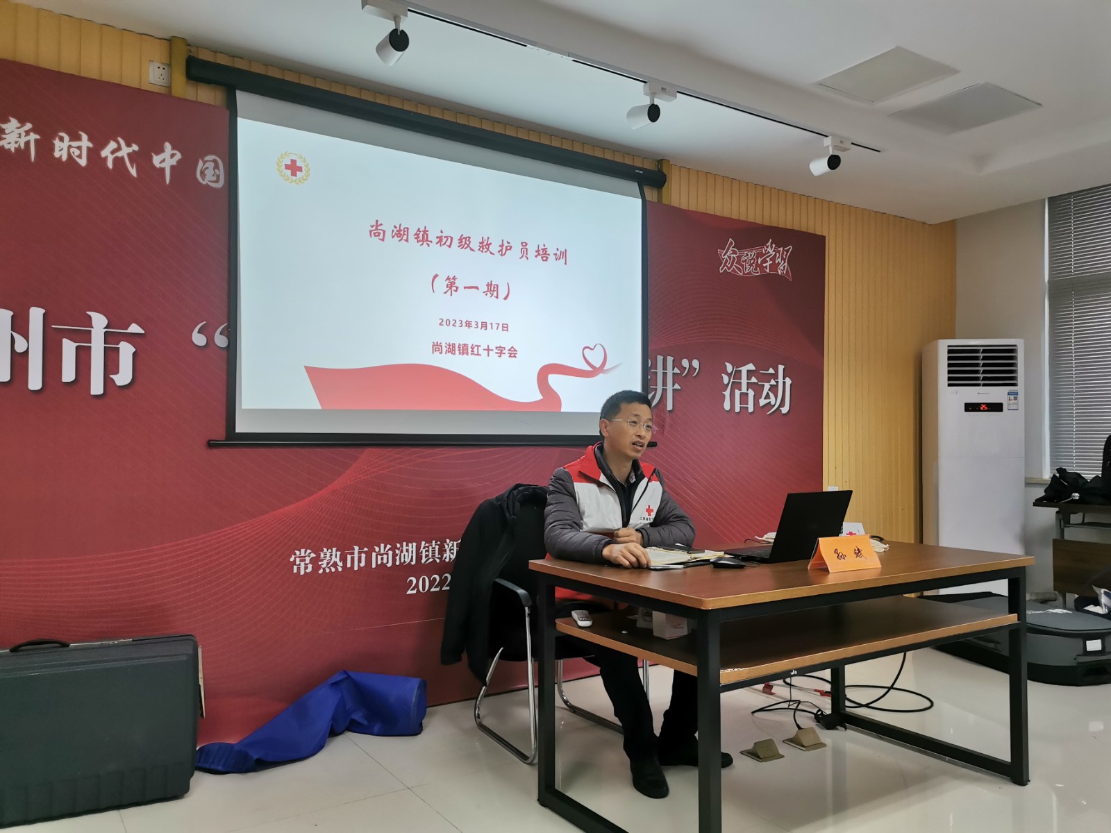 3月17日,常熟市尚湖镇红十字会组织开展尚湖镇2023年度第一期初级救护员培训,近50名学员参与培训。