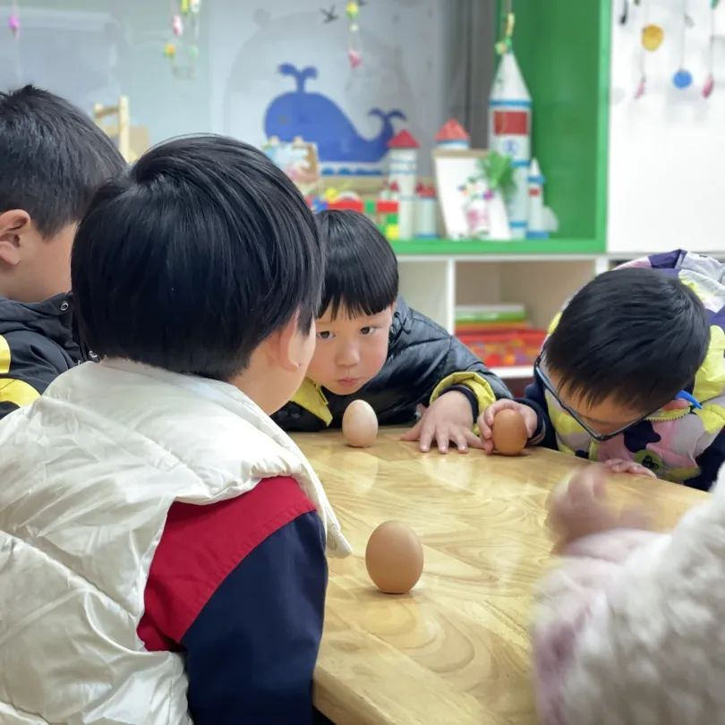 俗话说“春分到,蛋儿俏”,自古民间就有春分竖蛋的习俗。春分这一天最好玩的莫过于“竖鸡蛋”,孩子们轻手轻脚地在桌子上把鸡蛋竖起来。时而传来竖蛋成功的雀跃声,时而传来“哎呀,我的鸡蛋破了”失落声。“竖蛋”游戏过后,孩子们发挥着奇思妙想,不仅为蛋宝宝披上春日的新衣,还通过剪贴、添画、装饰等多种形式,组合成一幅幅精美奇特的树叶贴画。一件件独一无二的作品,无不洋溢着春的气息。
