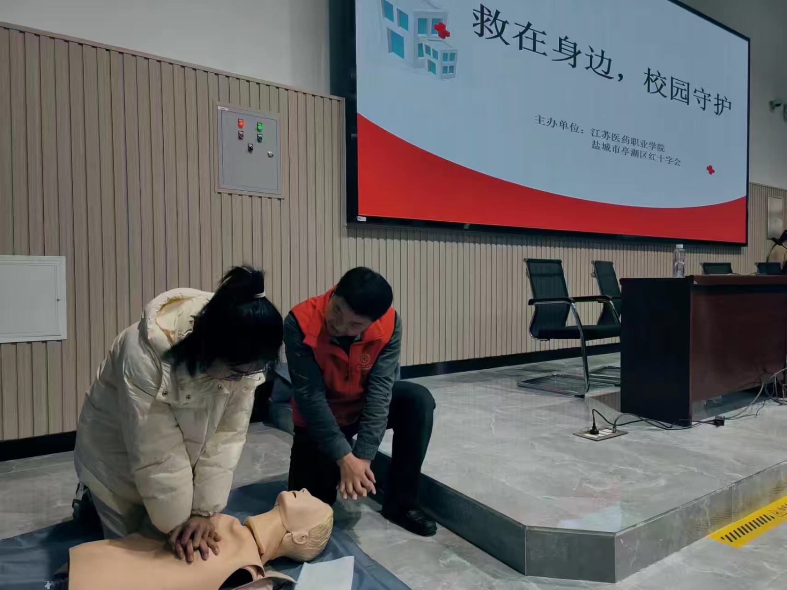 为普及应急救护知识,提高大学生应急救护能力,近日,亭湖区红十字会走进江苏医药职业学院,为该校医学影像学院近150名在校生开展应急救护培训。