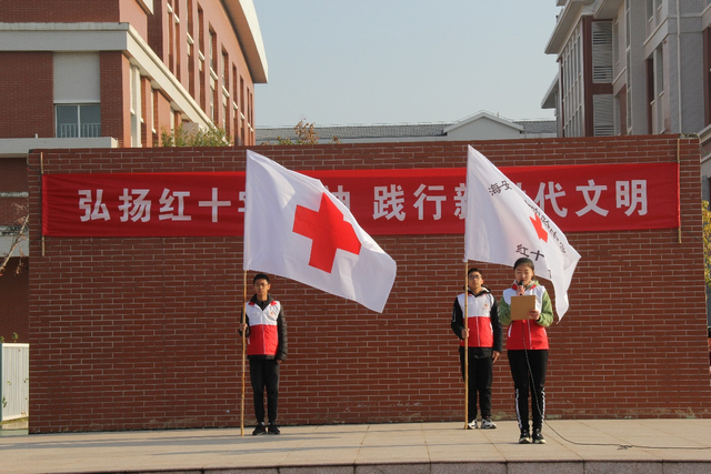 建立红十字救护培训基地和学校学生救护队,将学校红十字青少年活动与德育工作有机结合,利用校园宣传长廊、黑板报、电子显示屏等多种形式宣传红十字精神。