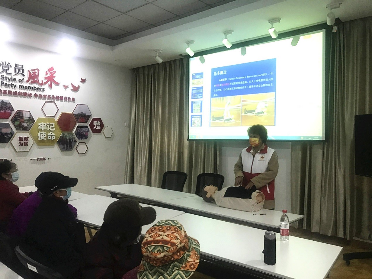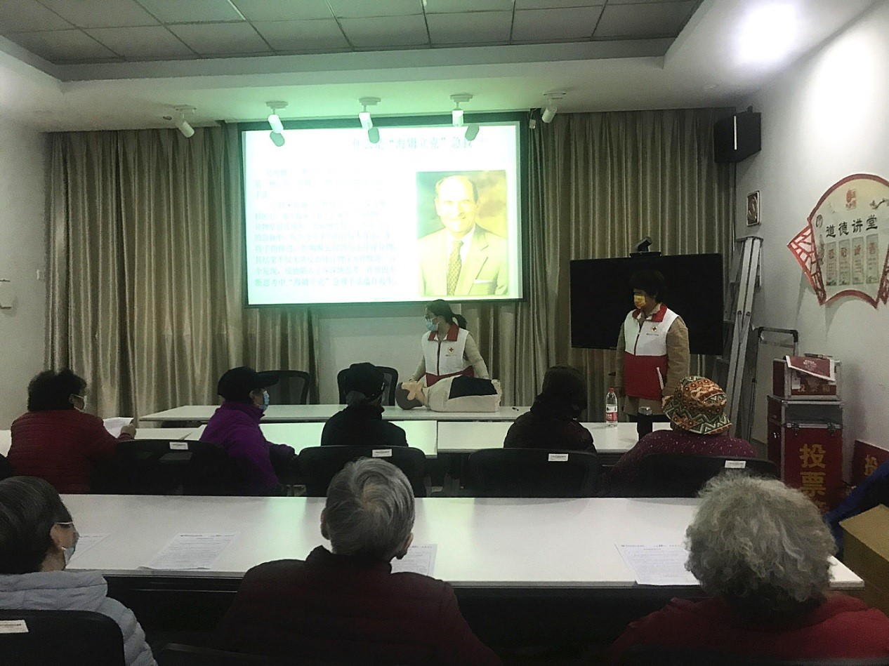 国泰民安社区隶属南京市建邺区南苑街道,社区6个小区多为老旧小区,老年群体基数较大使得社区的急救培训和义诊等活动需求较大。2023年3月21日下午,结合义诊活动,建邺区红十字会组织志愿者为辖区50余名居民进行了一场心肺复苏讲座,受到居民欢迎。