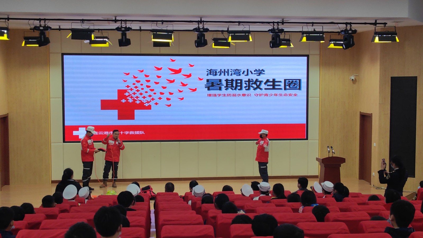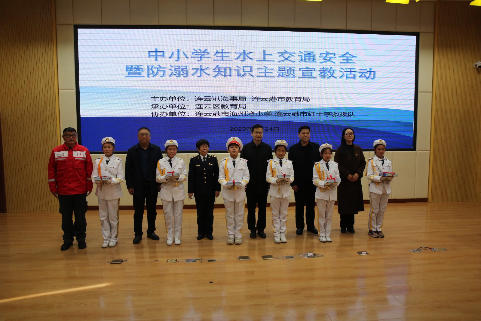 3月24日下午,市红十字救援队5名水域救援队员应邀参加了由连云港海事局、市教育局主办的“中小学生水上交通安全暨防溺水知识主题宣教活动”启动仪式。