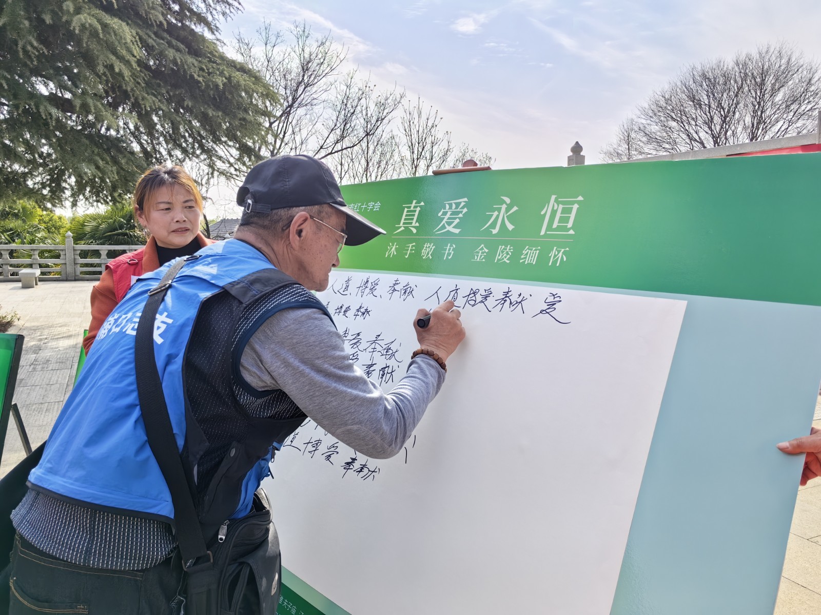3月28日下午,浦口区红十字会在凤凰阁广场开展了真爱永恒——“沐手敬书 金陵缅怀”浦口分会场主题宣传活动,通过用手书写“人道、博爱、奉献”,与全市一起响应,共同表达对志友们的缅怀和敬意。