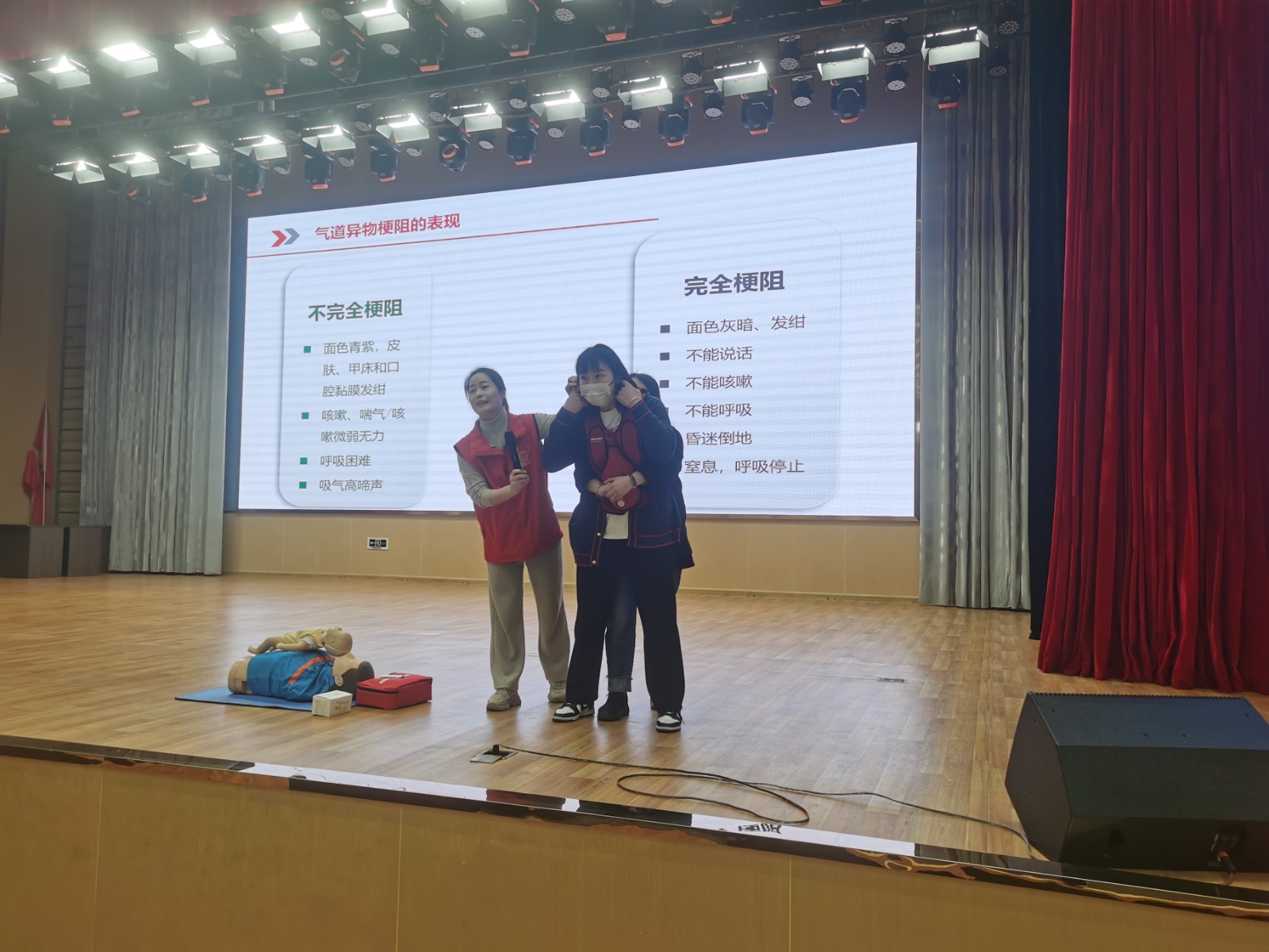 在理论培训中,曹玲玲老师对红十字会的基本知识进行了讲解,同时结合理论知识和实际救护技巧,对生活中遇到的突发状况急救,外伤包扎,异物梗塞等做了详细的讲解。曹玲玲老师详细讲解了心肺复苏的操作过程。并与学员深入互动,手把手传授急救手法和注意事项。